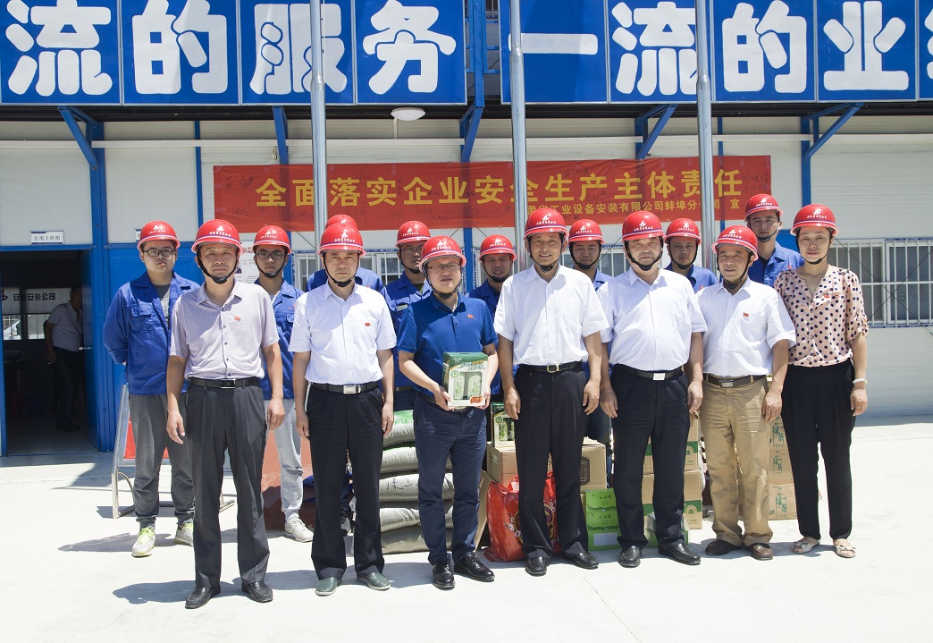 炎炎夏日送清涼,絲絲關(guān)愛寄深情。為確保基層一線職工安全度夏,7月21日上午,集團公司黨委副書記牛曙東冒著高溫酷暑,在黨委工作部主任徐文聯(lián),安徽安裝公司董事長、總經(jīng)理王軍邦,紀委書記、工會主席李寬旭的陪同下,到安徽安裝公司蚌埠卷煙廠項目,為堅守在高溫下工作一線的干部員工送去了“清涼”和集團黨委親切的慰問,同時還為黨員干部、入黨積極分子上了一堂別開生面的黨課。
