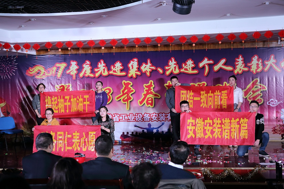 彩鳳辭舊歲,金犬迎新春。2月8日下午,安徽安裝公司2018年迎新春聯(lián)歡會(huì)如期舉行。公司領(lǐng)導(dǎo)及全體員工200余人歡聚一堂,共迎新春佳節(jié),共享節(jié)日喜悅!
