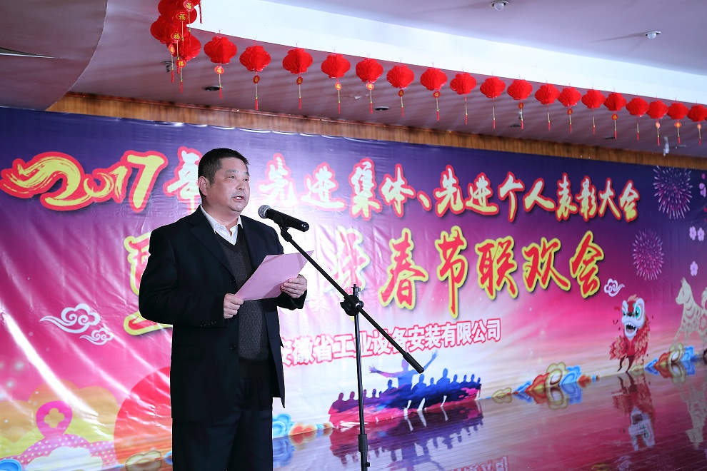 公司董事長、總經(jīng)理王軍邦發(fā)表了熱情洋溢的新年致辭。他指出,2017年,集團(tuán)公司整體上市成功,公司作為集團(tuán)產(chǎn)業(yè)鏈安裝板塊的重要一環(huán),順利實(shí)現(xiàn)整體上市。公司上下緊扣發(fā)展第一要?jiǎng)?wù),聚精會(huì)神抓黨建,一心一意謀發(fā)展,團(tuán)結(jié)奮進(jìn),扎實(shí)工作,實(shí)現(xiàn)產(chǎn)值12.28億元,合同額15.52億元,利潤突破千萬元,創(chuàng)歷史新高;新疆市場進(jìn)一步開拓,承接了安裝公司有史以來最大的新疆烏蘇管廊項(xiàng)目3.59億元。在集團(tuán)的大力支持下,中標(biāo)新疆市場博爾塔拉蒙古自治州兩個(gè)PPP項(xiàng)目,共計(jì)39.79億元,全面超額完成年度各項(xiàng)指標(biāo)任務(wù)。這些成績的取得凝聚著安徽安裝人的心血和汗水,是我們眾志成城、頑強(qiáng)拼搏、砥礪奮進(jìn)的結(jié)果;2018年,讓我們統(tǒng)一思想、齊心協(xié)力,用智慧、靠實(shí)干、憑業(yè)績,主動(dòng)作為,為開創(chuàng)安徽安裝發(fā)展新局面而持續(xù)奮斗!
