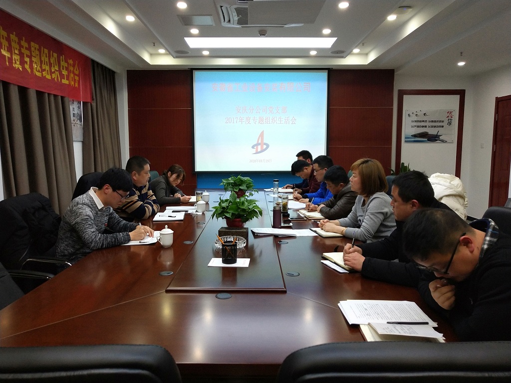 3月19日下午,安慶分公司黨支部組織全體黨員召開了2017年度專題組織生活會,公司董事長、總經(jīng)理王軍邦,黨委辦公室楊駿輝應(yīng)邀參加此次會議。會議由分公司黨支部書記劉紅艷主持。