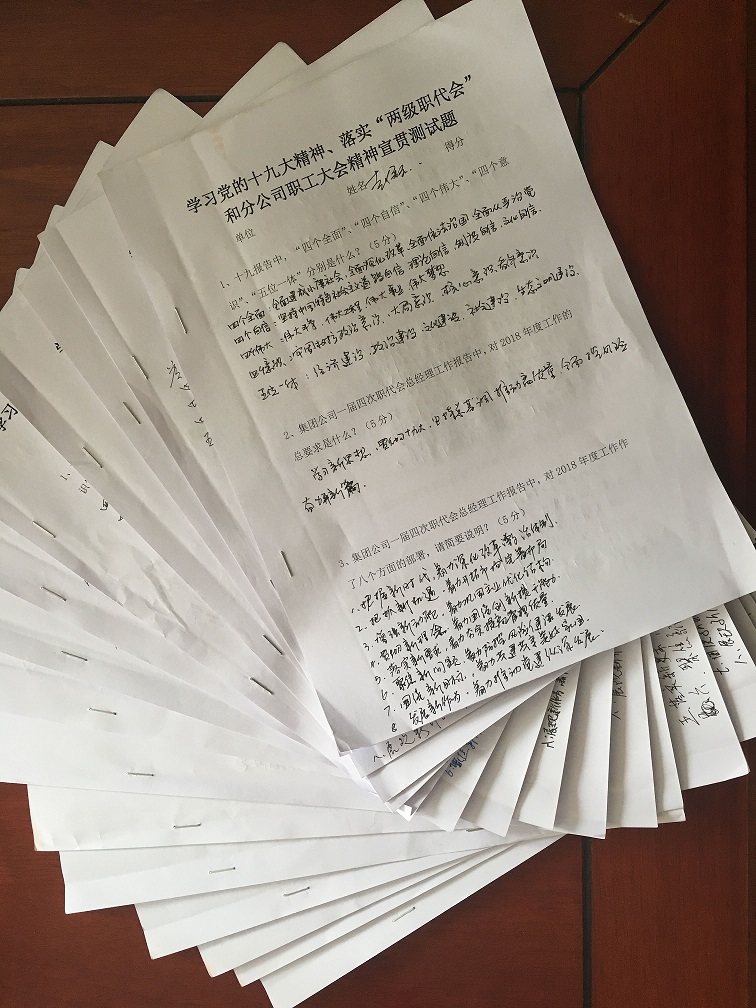 會上,還對參加學(xué)習(xí)的同志進行了隨堂考試。