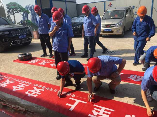 隨著儀式的展開,分公司副經(jīng)理張漢軍帶領(lǐng)全體人員進(jìn)行了莊嚴(yán)的安全宣誓。接著,分公司總工程師梁興邵現(xiàn)場進(jìn)行安全知識宣講,分公司工會主席、項目臨時黨支部書記程茂麗隨后宣讀了《關(guān)于在安徽中煙蚌埠卷煙廠項目部開展“中煙項目干勁足 安全生產(chǎn)爭先鋒”勞動競賽活動的通知》。最后,項目執(zhí)行經(jīng)理郭洋代表項目部表態(tài)發(fā)言:一定會以本次活動為契機(jī),加強(qiáng)現(xiàn)場安全管理,努力提升項目安全管理水平再上新臺階。