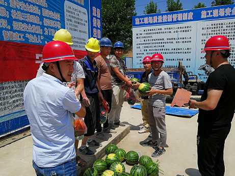 6月18日一大早,項目負(fù)責(zé)人攜管理人員,帶著粽子、西瓜、白糖等慰問品,為奮斗在一線的工人帶去一份份節(jié)日的問候和祝福,并叮囑大家規(guī)范操作,遠(yuǎn)離三違,安全生產(chǎn)。
