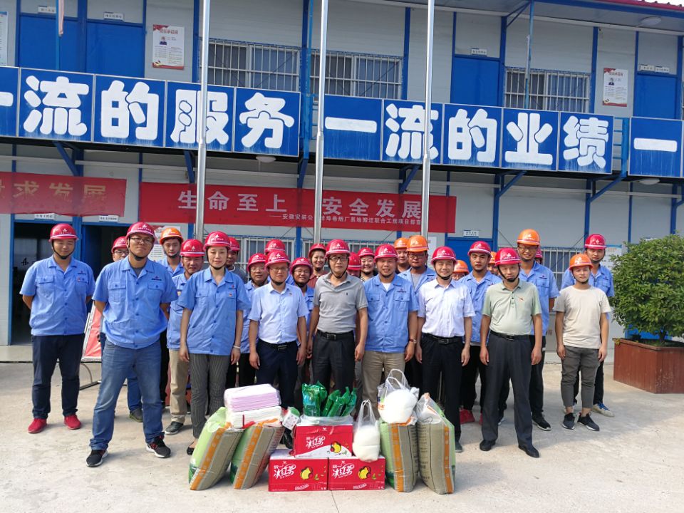 炎炎夏日、氣溫不斷攀升。為保障一線員工身體健康,7月31日下午,公司副總經(jīng)理劉安俊,公司紀委書記、工會主席李寬旭來到安徽中煙蚌埠卷煙廠項目部施工現(xiàn)場,看望慰問奮戰(zhàn)在一線的員工,為他們送去了綠豆、白糖、風油精、十滴水等防暑降溫用品,帶來了濃濃的關(guān)愛和絲絲清涼。