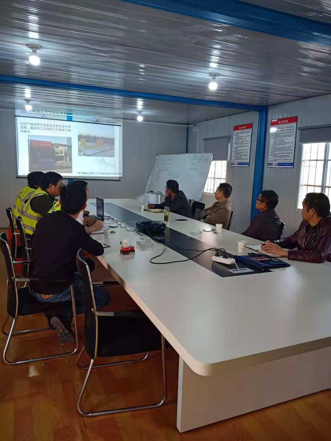 最后胡六中提出四點要求:一要加強項目人員之間的溝通,提高管理水平,提升管理效益;二要做好項目進度、質(zhì)量、文明施工管理工作,特別要注意冬季高空作業(yè)安全問題;三要加強學習各項規(guī)章制度,提高工作效率;四要加強項目管理,規(guī)范現(xiàn)場施工,樹立企業(yè)形象,樹立品牌效應(yīng),為大陸馬牌四期生產(chǎn)廠房項目的順利承接打好基礎(chǔ)。