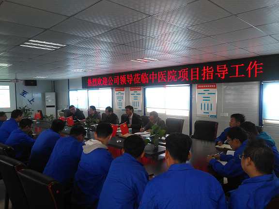 2018年11月2日上午,公司副總經(jīng)理高飛在公司有關(guān)部門負(fù)責(zé)人陪同下,深入阜陽市潁東區(qū)中醫(yī)院PPP建設(shè)項目部調(diào)研指導(dǎo)工作。房建(裝飾)分公司副經(jīng)理許杰、項目部主要負(fù)責(zé)同志等陪同調(diào)研。