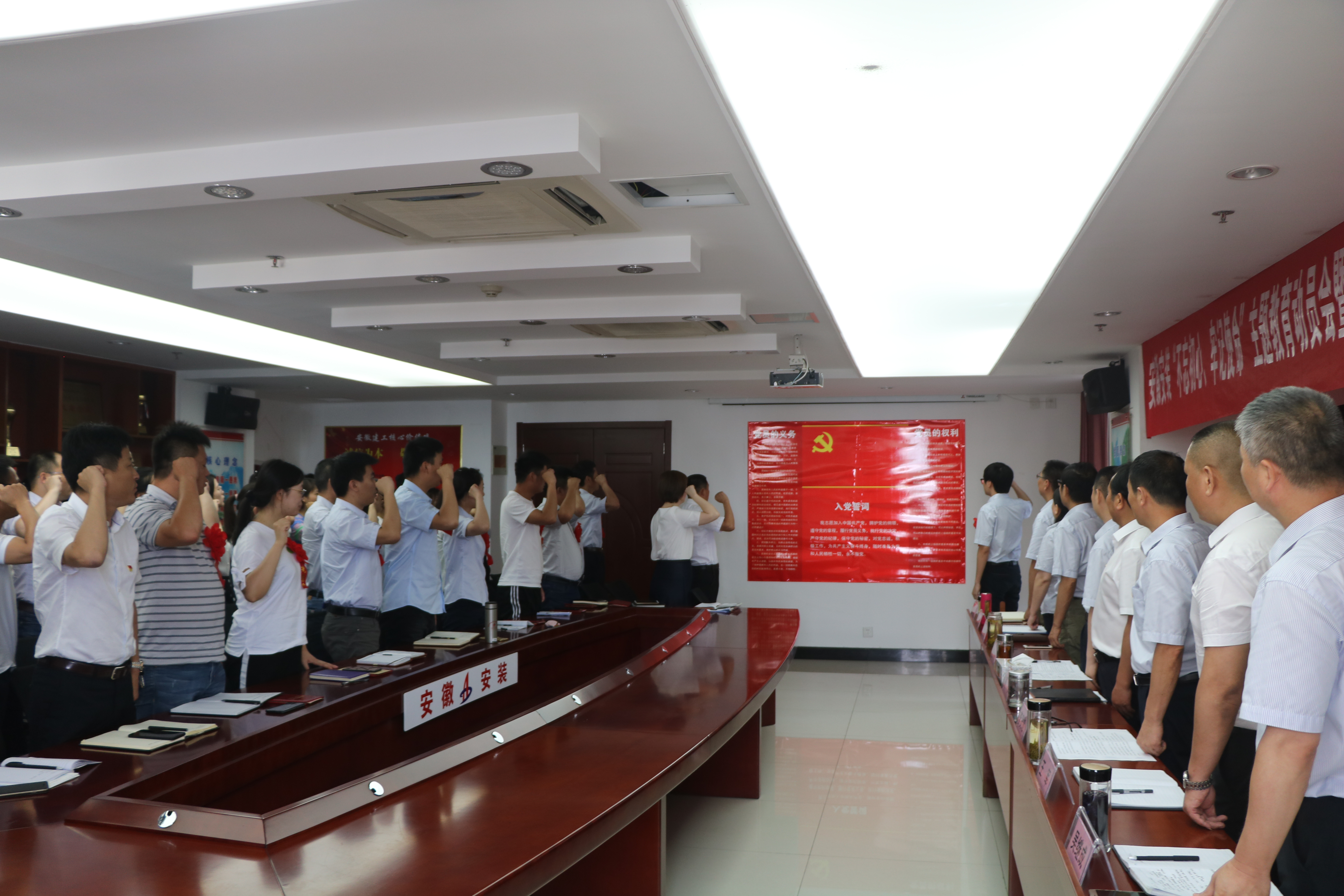 胡六中指出,開展“不忘初心、牢記使命”主題教育,是使廣大黨員樹牢理想信念,堅定政治立場,貫徹落實習(xí)近平新時代中國特色社會主義的重要舉措。我們要始終牢記中國共產(chǎn)黨人的初心和使命,加強組織紀(jì)律,解決好目前工作中存在的問題,不斷提升基層黨支部的黨建工作水平,充分發(fā)揮其戰(zhàn)斗堡壘作用。公司全體黨員干部要重點圍繞習(xí)近平總書記對領(lǐng)導(dǎo)干部提出的“五個過硬”要求立形象、作標(biāo)桿,以“我將無我,不負人民”的境界和擔(dān)當(dāng),堅定理想信念,站穩(wěn)政治立場,勇?lián)?dāng)、敢作為,以永不懈怠的精神狀態(tài)和一往無前的奮斗姿態(tài),搶抓機遇,扎實苦干,為推動安徽安裝實現(xiàn)高質(zhì)量發(fā)展而不懈奮斗!