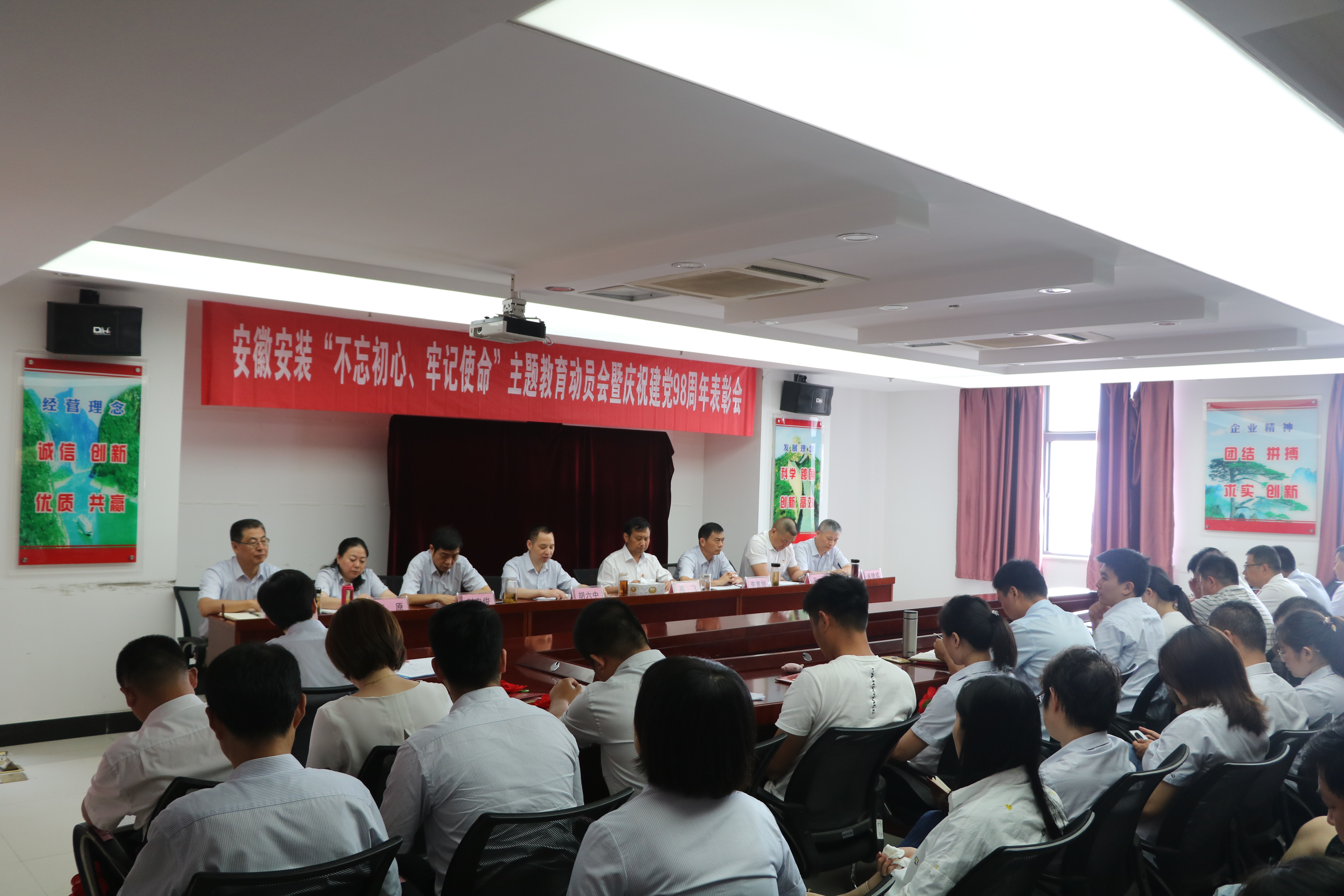 為慶祝中國共產(chǎn)黨建黨98周年,扎實開展好“不忘初心、牢記使命”主題教育,不斷提升基層黨建工作整體水平。6月27日上午,安徽安裝公司黨委召開慶祝建黨98周年表彰會暨黨課報告會。公司領(lǐng)導(dǎo)班子成員、機關(guān)部門正副職、機關(guān)在崗黨員、分公司領(lǐng)導(dǎo)班子成員和受表彰的先進基層黨組織、優(yōu)秀共產(chǎn)黨員和優(yōu)秀黨務(wù)工作者共70余人參加會議。會議由公司紀(jì)委書記、工會主席李寬旭主持。