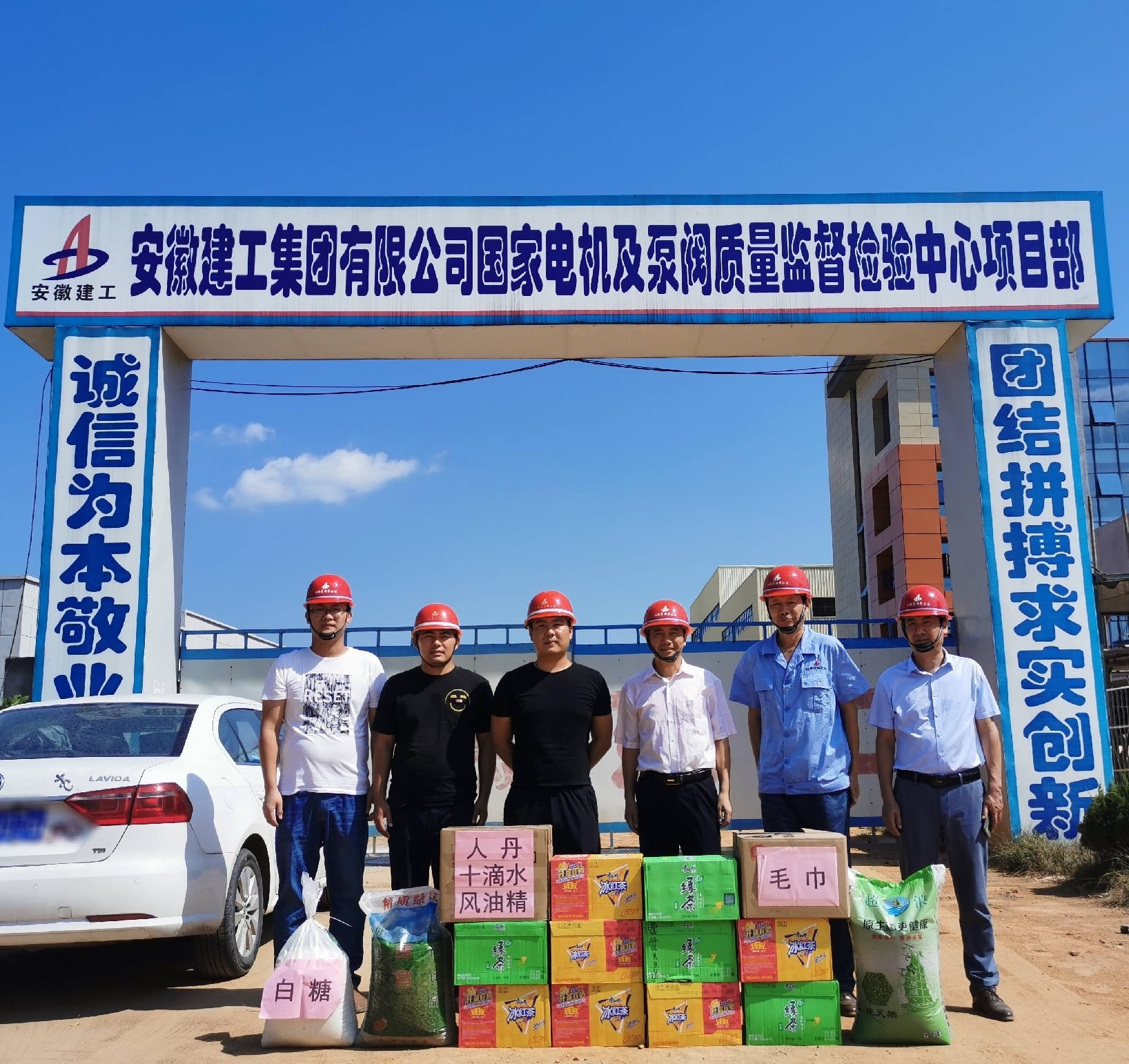 7月29日上午公司領(lǐng)導(dǎo)紀(jì)委書記、工會(huì)主席李寬旭赴涇縣國(guó)家電機(jī)及泵閥質(zhì)量監(jiān)督檢驗(yàn)檢測(cè)中心A鋼結(jié)構(gòu)廠房安裝工程項(xiàng)目部給現(xiàn)場(chǎng)施工人員送來夏日的清涼。公司領(lǐng)導(dǎo)帶來了白糖、綠豆、十滴水、藿香正氣等夏日所需防暑降溫的食品、藥品,親自送到一線每位員工手中,為沉悶炎熱的工地送來絲絲涼意。