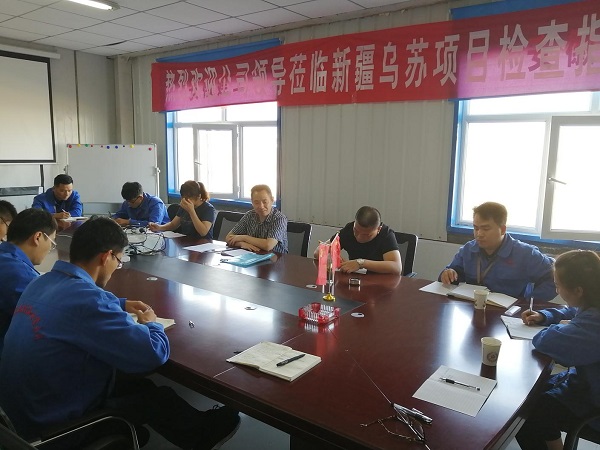 8月11日上午,安徽安裝公司黨委書記、董事長胡六中赴新疆新疆烏蘇中水回用項目檢查指導(dǎo)工作,并為項目部員工上黨課。副總經(jīng)理王軍陪同調(diào)研。