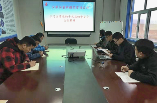 按照公司黨委《關(guān)于做好黨的十九屆四中全會精神學(xué)習(xí)宣傳工作的通知》要求,11月13日上午,西北分公司黨支部結(jié)合工作實際,分別組織機(jī)關(guān)及新疆烏蘇中水回用項目部全體黨員干部群眾召開了理論學(xué)習(xí)會,集中對黨的十九屆四中全會精神進(jìn)行學(xué)習(xí)宣貫。