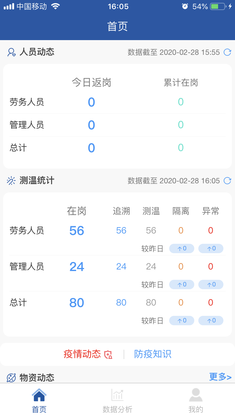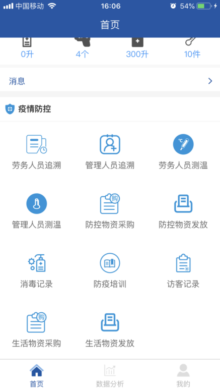 項(xiàng)目全面推行“返崗復(fù)工疫情防控系統(tǒng)”APP。主頁(yè)面包括勞務(wù)人員追溯、勞務(wù)人員測(cè)溫、防控物資采購(gòu)、消毒記錄、疫情培訓(xùn)等11個(gè)專題版面,通過這些功能可線上及時(shí)填報(bào)人員返崗日期、體溫、癥狀及是否為留守人員等詳細(xì)信息,還有項(xiàng)目部的疫情物資采購(gòu)情況、環(huán)境衛(wèi)生的消殺情況等相關(guān)信息,使上線人員時(shí)時(shí)了解疫情防控動(dòng)態(tài),充分借助信息技術(shù)手段,全力打贏疫情防控“戰(zhàn)役”。 借助這一平臺(tái)確保項(xiàng)目部實(shí)時(shí)、準(zhǔn)確、有效地掌握現(xiàn)場(chǎng)人員的健康情況,助力疫情防控工作。