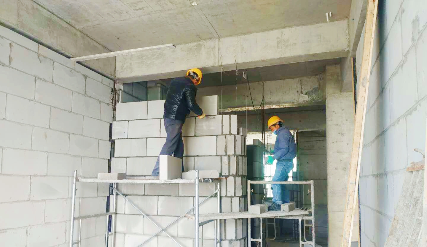 目前,項(xiàng)目管理人員25人,木工、鋼筋工、架子工共128人已進(jìn)場(chǎng),醫(yī)技樓14層頂板鋼筋綁扎、支模正在進(jìn)行施工;門診樓3—8層正在砌墻。