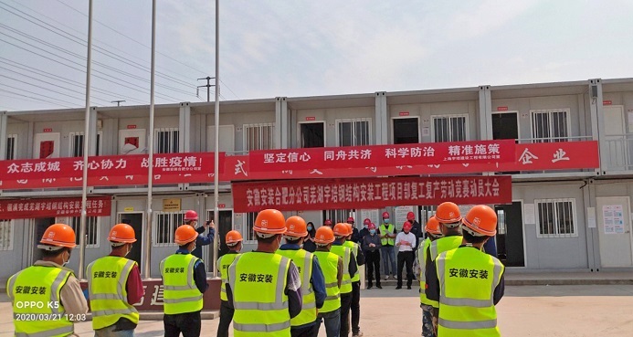 為確保年度各項(xiàng)目目標(biāo)任務(wù)順利完成,貫徹落實(shí)集團(tuán)和安裝公司兩級(jí)職代會(huì)及疫情防控、復(fù)工復(fù)產(chǎn)工作推進(jìn)會(huì)精神,3月21日上午,安徽安裝召開(kāi)蕪湖宇培裝配生產(chǎn)基地項(xiàng)目“大干90天”勞動(dòng)競(jìng)賽動(dòng)員會(huì)。公司黨委書(shū)記、董事長(zhǎng)胡六中,紀(jì)委書(shū)記、工會(huì)主席李寬旭,合肥分公司領(lǐng)導(dǎo)班子成員、項(xiàng)目管理人員和施工班組參加了競(jìng)賽動(dòng)員會(huì)。