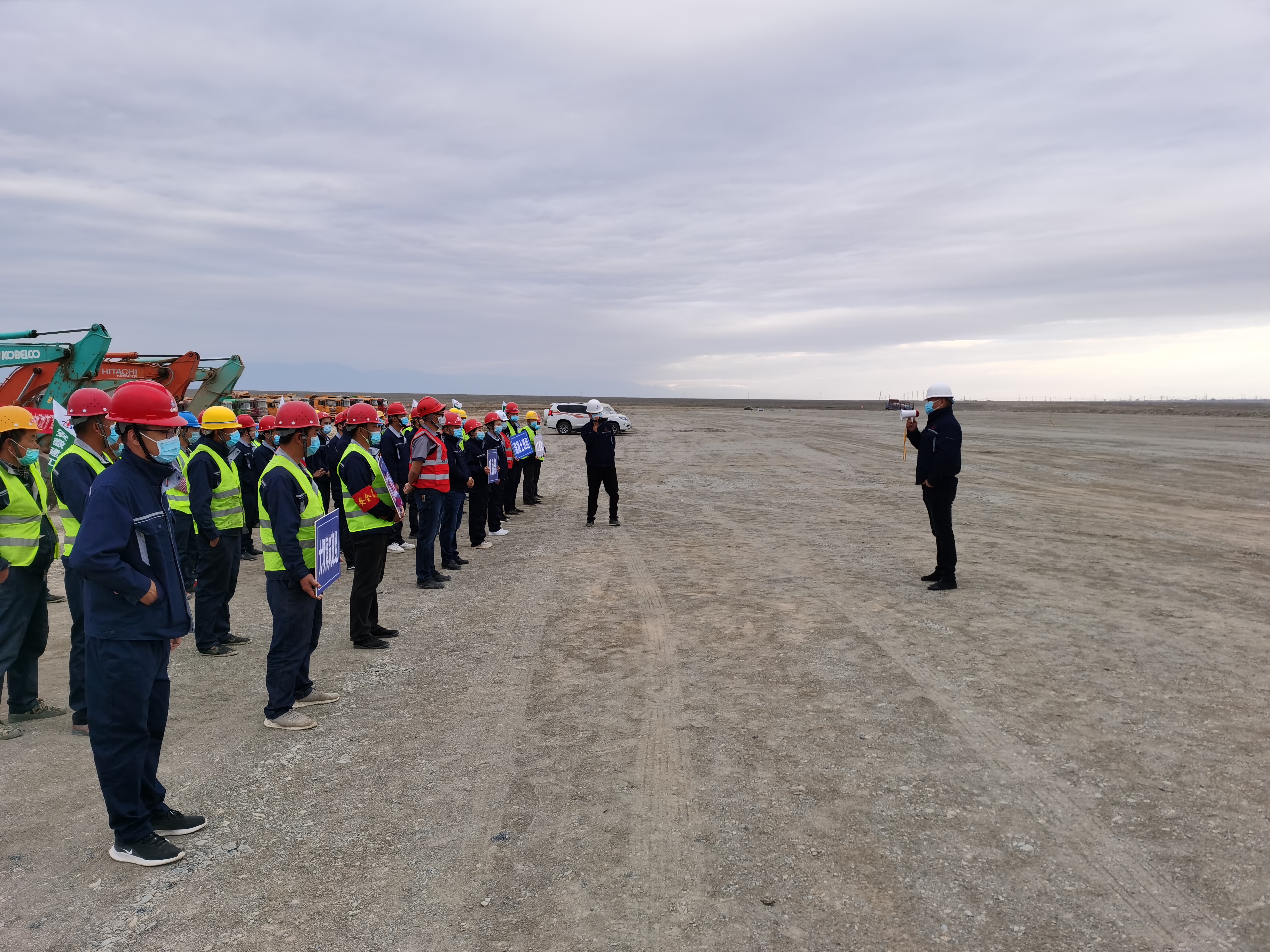 由于疫情影響,項(xiàng)目開工日期延遲近兩個(gè)月,為進(jìn)一步調(diào)動(dòng)參建人員的積極性和創(chuàng)造性,5月6日,項(xiàng)目部開展“四比四創(chuàng)、大干90天”勞動(dòng)競賽活動(dòng),比施工進(jìn)度,創(chuàng)最快建設(shè)速度;比工程質(zhì)量,創(chuàng)優(yōu)質(zhì)工程;比安全文明,創(chuàng)安全生產(chǎn)無事故;比成本效益,創(chuàng)良好企業(yè)形象。以競賽促生產(chǎn)、促安全、促管理、促效益、促發(fā)展,有效形成“比、學(xué)、趕、幫、超”的火熱生產(chǎn)局面。5月份的烏蘇市,白天氣溫已達(dá)三十度以上,盡管如此,每一位參建人員每天堅(jiān)持工作十四個(gè)小時(shí),偌大的施工現(xiàn)場,近百輛工程機(jī)械緊張作業(yè),挖掘機(jī)、推土機(jī)、壓路機(jī)的轟鳴聲震耳欲聾、重型卡車來回穿梭蕩起滾滾煙塵......截至目前,蓄水池壩體填筑已完成232700m3,完成產(chǎn)值約3000萬元,實(shí)現(xiàn)節(jié)點(diǎn)任務(wù)滿產(chǎn)超產(chǎn),切實(shí)做到“兩手都要抓、兩手都要硬、兩戰(zhàn)都要贏”。