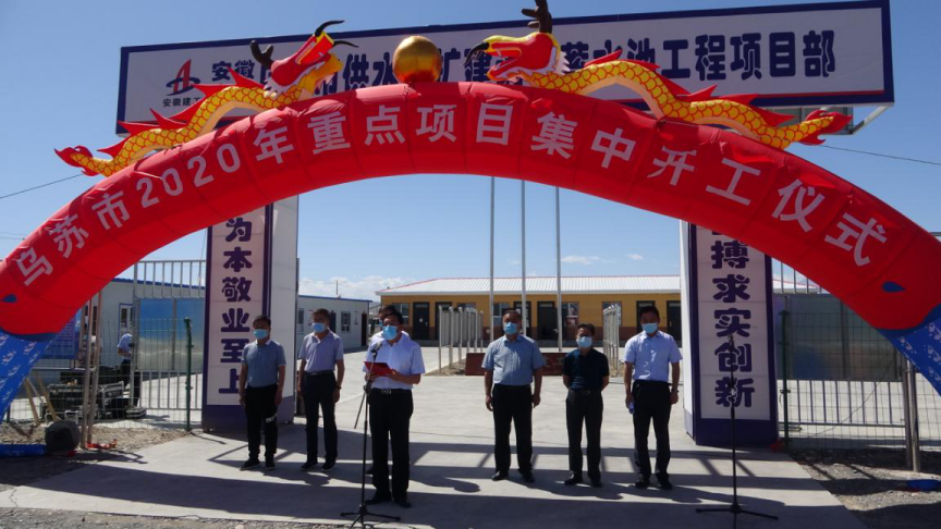 2020年5月28日,烏蘇市2020年重點(diǎn)項(xiàng)目集中開(kāi)工儀式在烏蘇市供水改擴(kuò)建調(diào)節(jié)蓄水池工程項(xiàng)目部召開(kāi)。塔城地區(qū)地委委員阿依丁·托留汗,烏蘇市政協(xié)黨組書(shū)記王永安,烏蘇市委常委、常務(wù)副市長(zhǎng)陳斌,塔城地區(qū)水利局、國(guó)土資源局等相關(guān)部門(mén)領(lǐng)導(dǎo)及項(xiàng)目各參建單位參加開(kāi)工儀式,開(kāi)工儀式由陳斌主持。