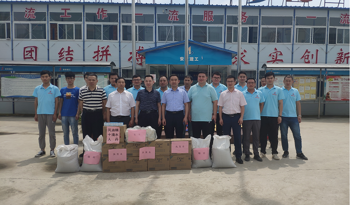 黃代一行將綠豆、白糖、人丹、十滴水等防暑降溫用品親自送到員工手中,向奮戰(zhàn)在一線的員工們表示慰問和感謝,叮囑大家要做好防暑降溫工作,使項(xiàng)目部員工在炎炎夏日中,感受到了一抹沁人心扉的清涼。