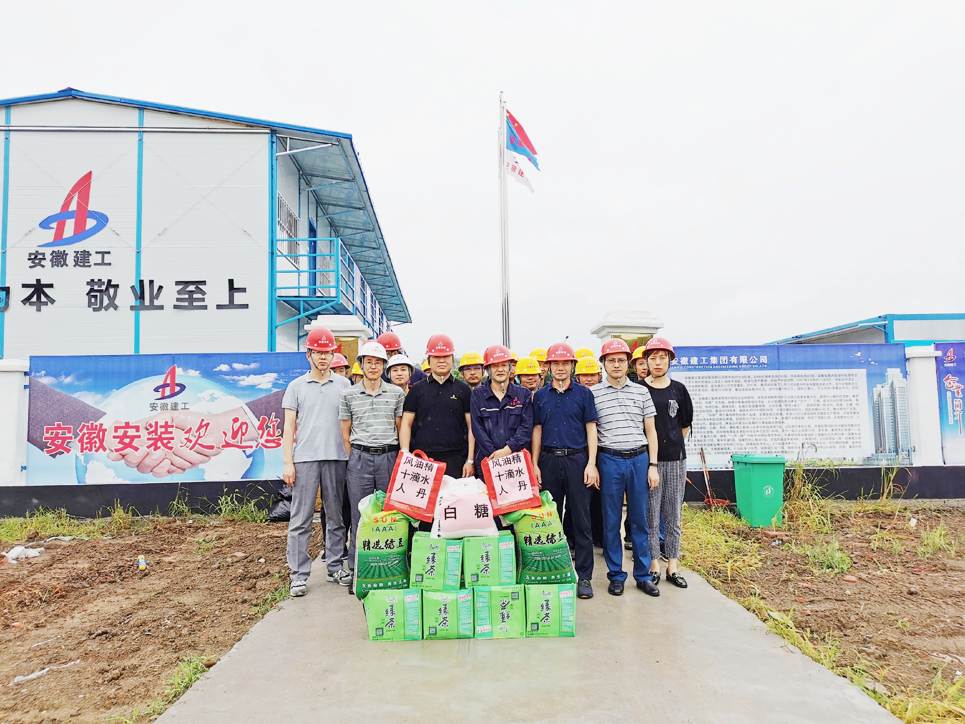 7月17日上午,公司領(lǐng)導(dǎo)走訪慰問了合肥分公司蕪湖宇培鋼結(jié)構(gòu)項目部,為高溫天氣堅守在工作一線的項目部員工帶來了夏日防暑的常用藥品及飲料、綠豆、白糖、茶葉等。要求項目部堅持以人為本,一定要做好常態(tài)化疫情防控、防暑降溫、雨期安全工作,尤其是高溫、大風(fēng)等極端天氣更要精心部署,合理安排作業(yè)內(nèi)容,避開高溫時段施工,每日班前做好員工精神狀態(tài)確認,安全提醒到位,確保高溫季節(jié)一線職工安全度暑。