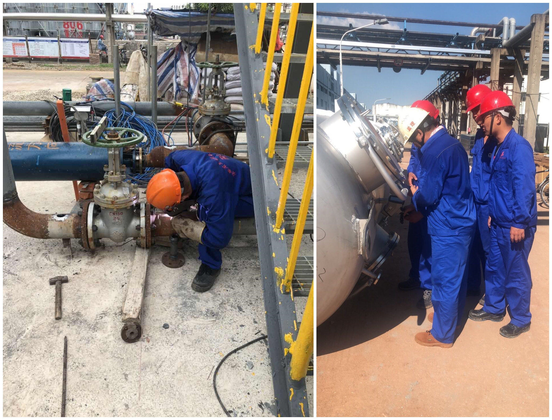 夜幕降臨,石化項目的作業(yè)并未結束?,F(xiàn)場一片燈火通明,施工伴隨著機器作業(yè)聲一直持續(xù)到晚上九點半。雖然項目作業(yè)任務重,但是項目全體員工心往一處想、勁往一處使,看著項目不斷推進直至完工,大家心里非常有成就感。