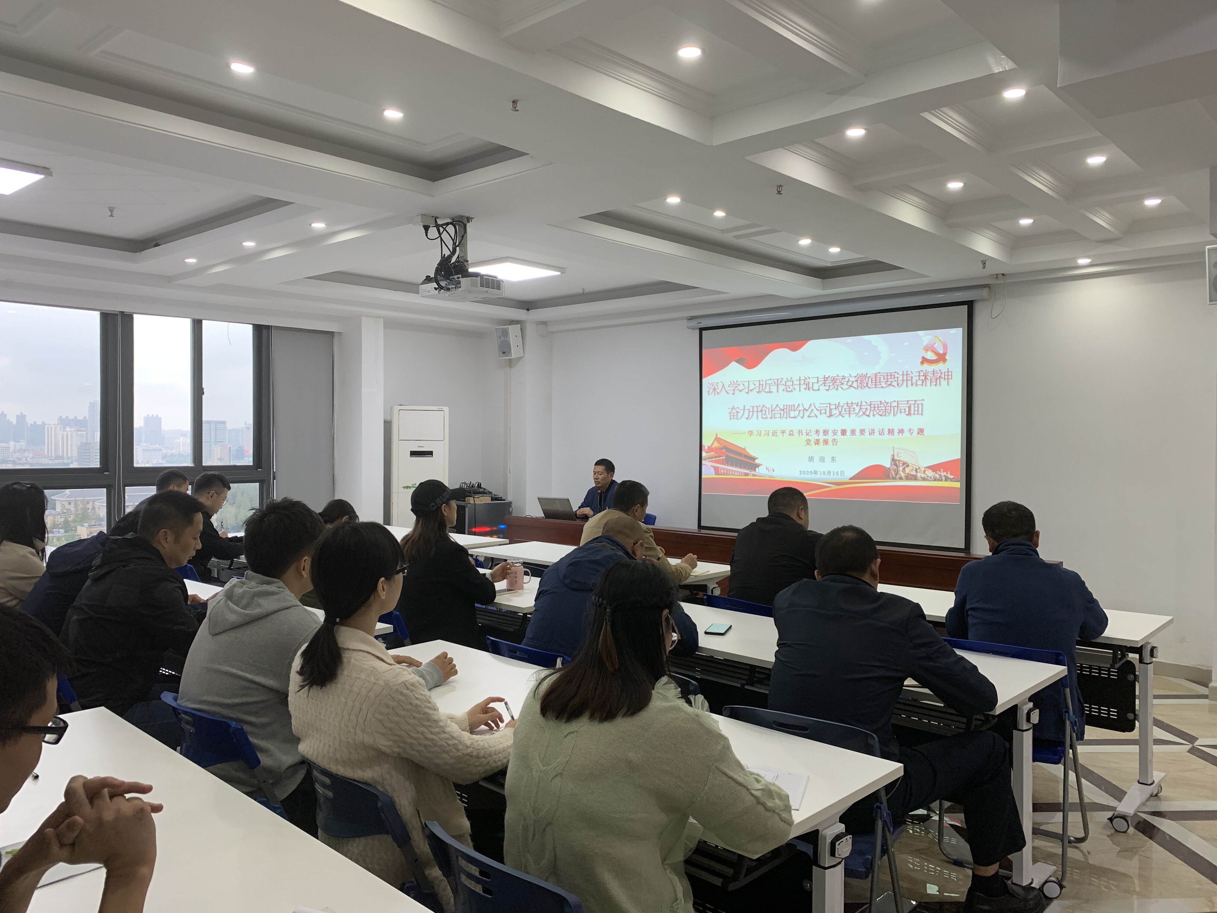 1016日下午,合肥分公司在公司15樓職工之家舉行學(xué)習(xí)貫徹習(xí)近平總書記考察安徽重要講話精神專題黨課報(bào)告會(huì)。合肥分公司黨支部書記胡迎東在會(huì)上作了題為《深入學(xué)習(xí)習(xí)近平總書記考察安徽重要講話精神 奮力開創(chuàng)合肥分公司改革發(fā)展新局面》的黨課報(bào)告。合肥分公司黨支部全體黨員、機(jī)關(guān)及項(xiàng)目員工共40余人聽取了黨課報(bào)告,會(huì)議以視頻會(huì)議的方式召開。
