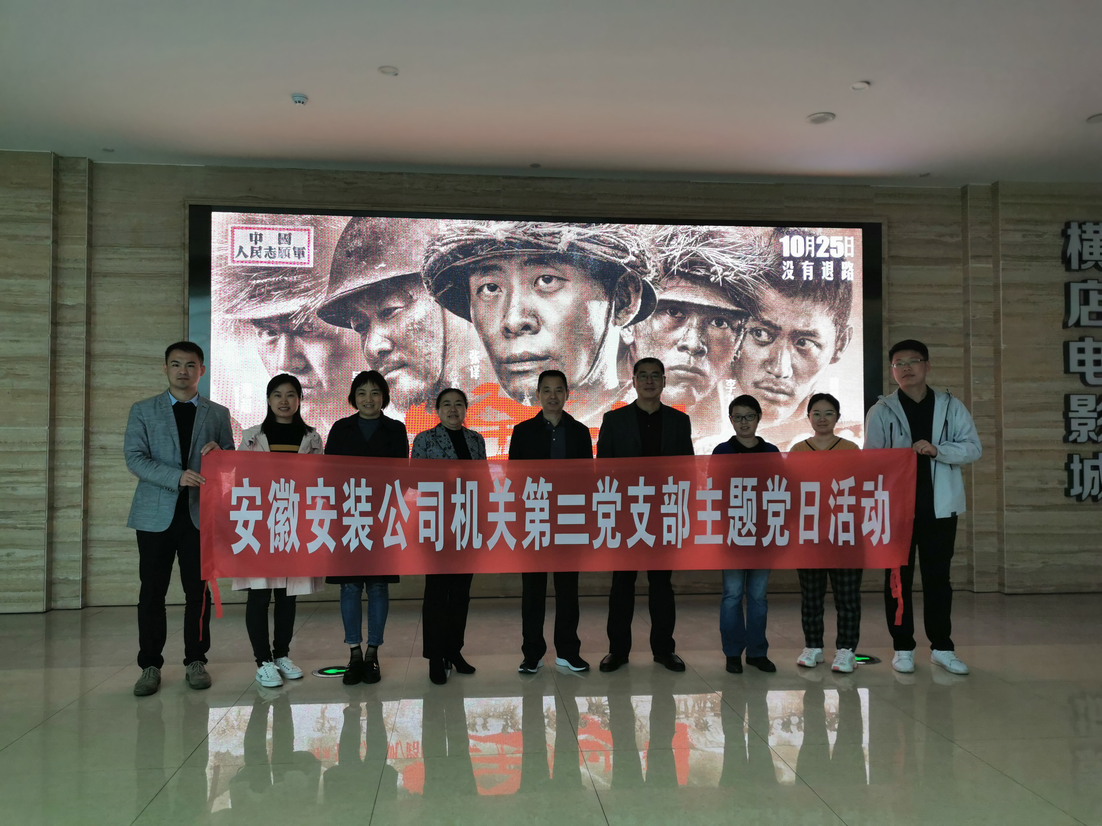 為紀(jì)念抗美援朝偉大戰(zhàn)爭(zhēng),向中國(guó)人民志愿軍致敬,2020年10月26日,機(jī)關(guān)第三黨支部組織全體黨員觀看抗美援朝主題電影《金剛川》。公司黨委書(shū)記、董事長(zhǎng)胡六中,副總經(jīng)理李原及總會(huì)計(jì)師張?jiān)笠云胀h員身份參加。