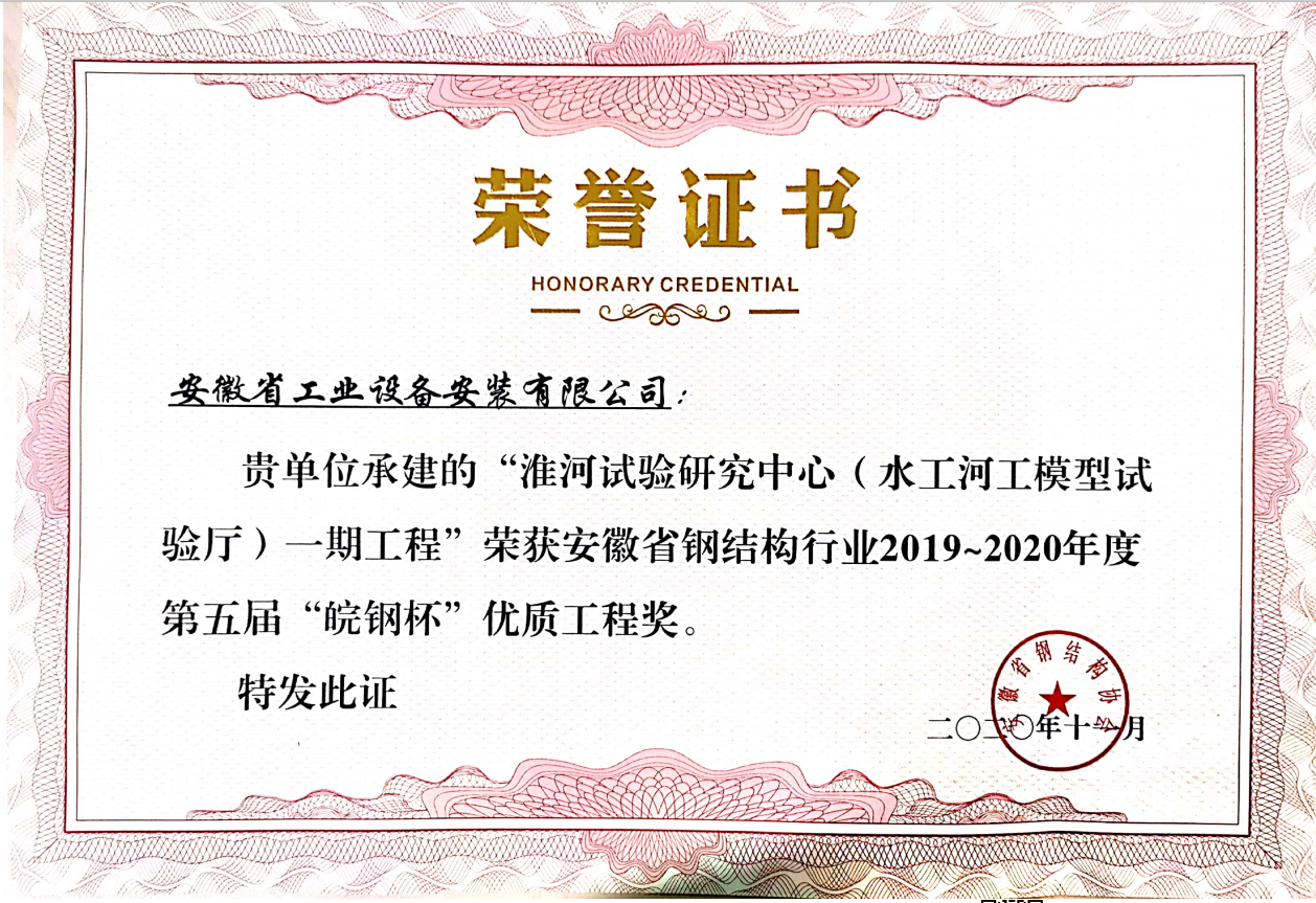 近日,以“聚焦十四五,展望鋼結(jié)構(gòu)”為主題的安徽省鋼結(jié)構(gòu)協(xié)會(huì)三屆二次會(huì)員代表大會(huì)暨學(xué)術(shù)交流會(huì)公布了“皖鋼杯”獲獎(jiǎng)名單,安徽安裝公司承建的淮河試驗(yàn)研究中心(水工河工模型試驗(yàn)廳)一期工程榮獲“皖鋼杯”優(yōu)質(zhì)工程獎(jiǎng),公司黨委書(shū)記、董事長(zhǎng)胡六中榮獲安徽省鋼結(jié)構(gòu)行業(yè)優(yōu)秀企業(yè)家,蚌埠分公司副經(jīng)理、淮河試驗(yàn)研究中心一期工程項(xiàng)目經(jīng)理張斌被評(píng)為優(yōu)秀項(xiàng)目經(jīng)理。這也是我公司首次榮獲鋼結(jié)構(gòu)工程類獎(jiǎng)項(xiàng)。