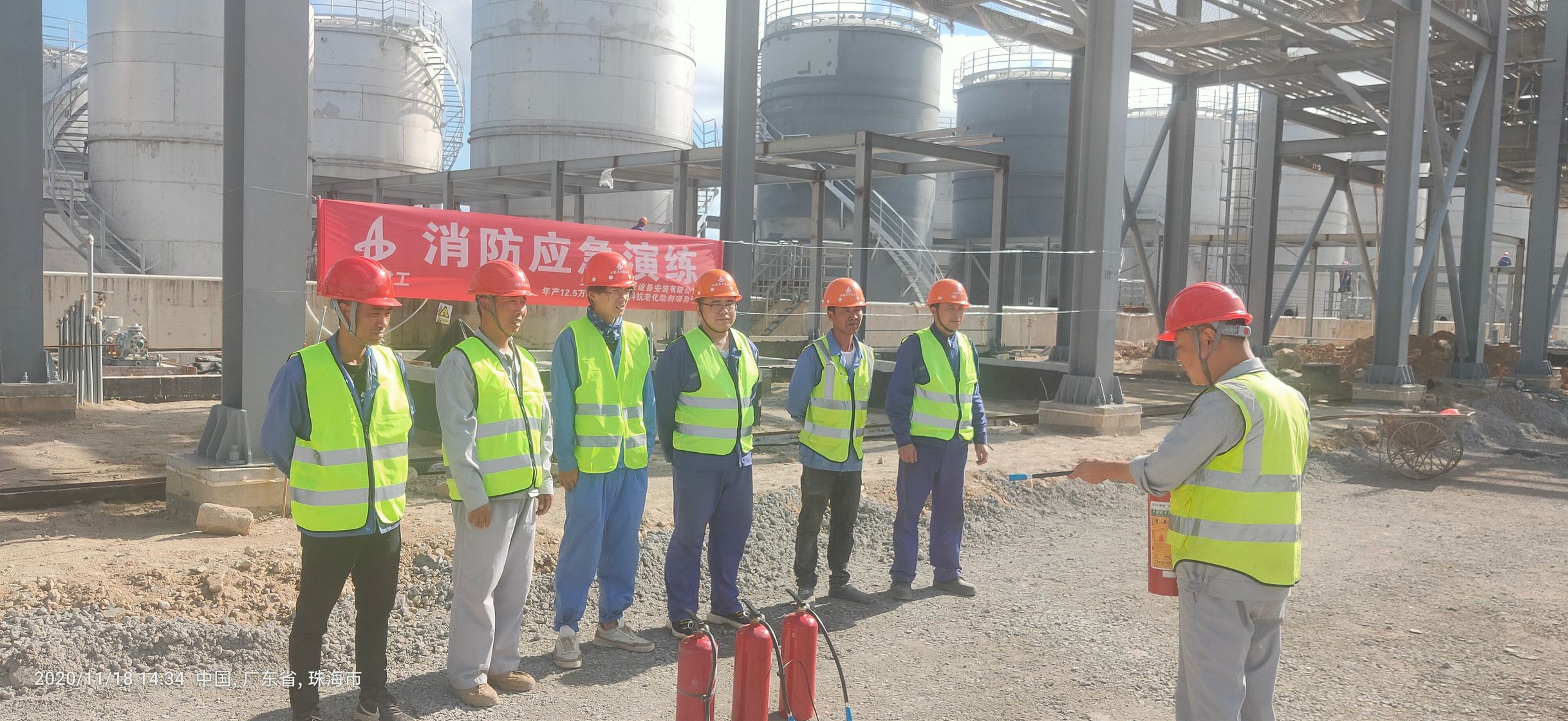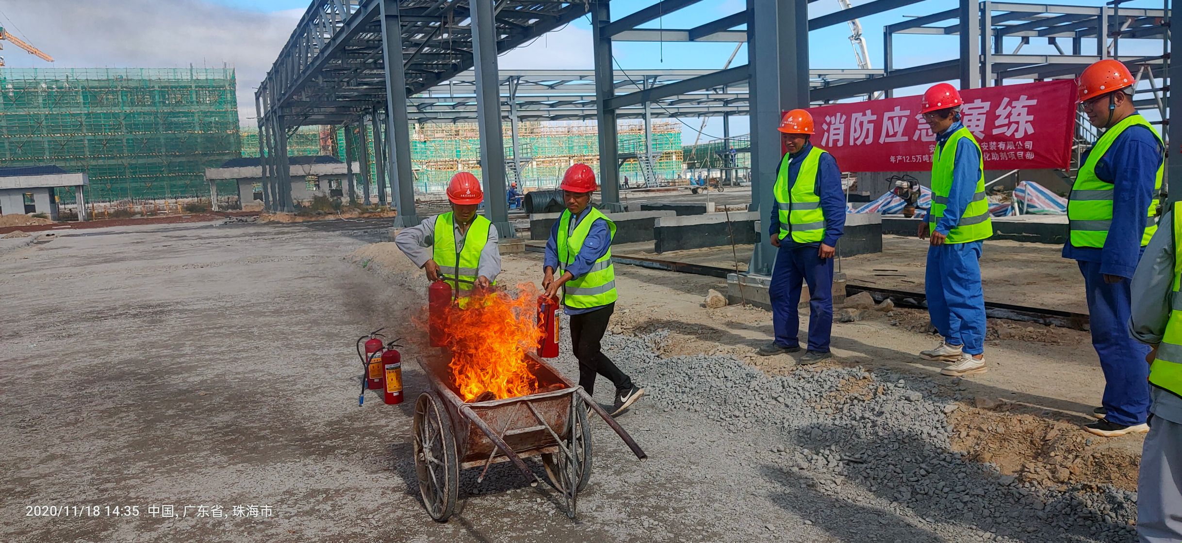 為了進一步做好項目現(xiàn)場安全工作,增強施工人員的消防安全意識,利用“消防日”活動契機,11月18日,西北分公司珠海利安隆項目部組織員工開展了“冬季消防應急演練”活動。此次演練活動由項目部安全負責人、各班組組長及生產(chǎn)工人共同參加。