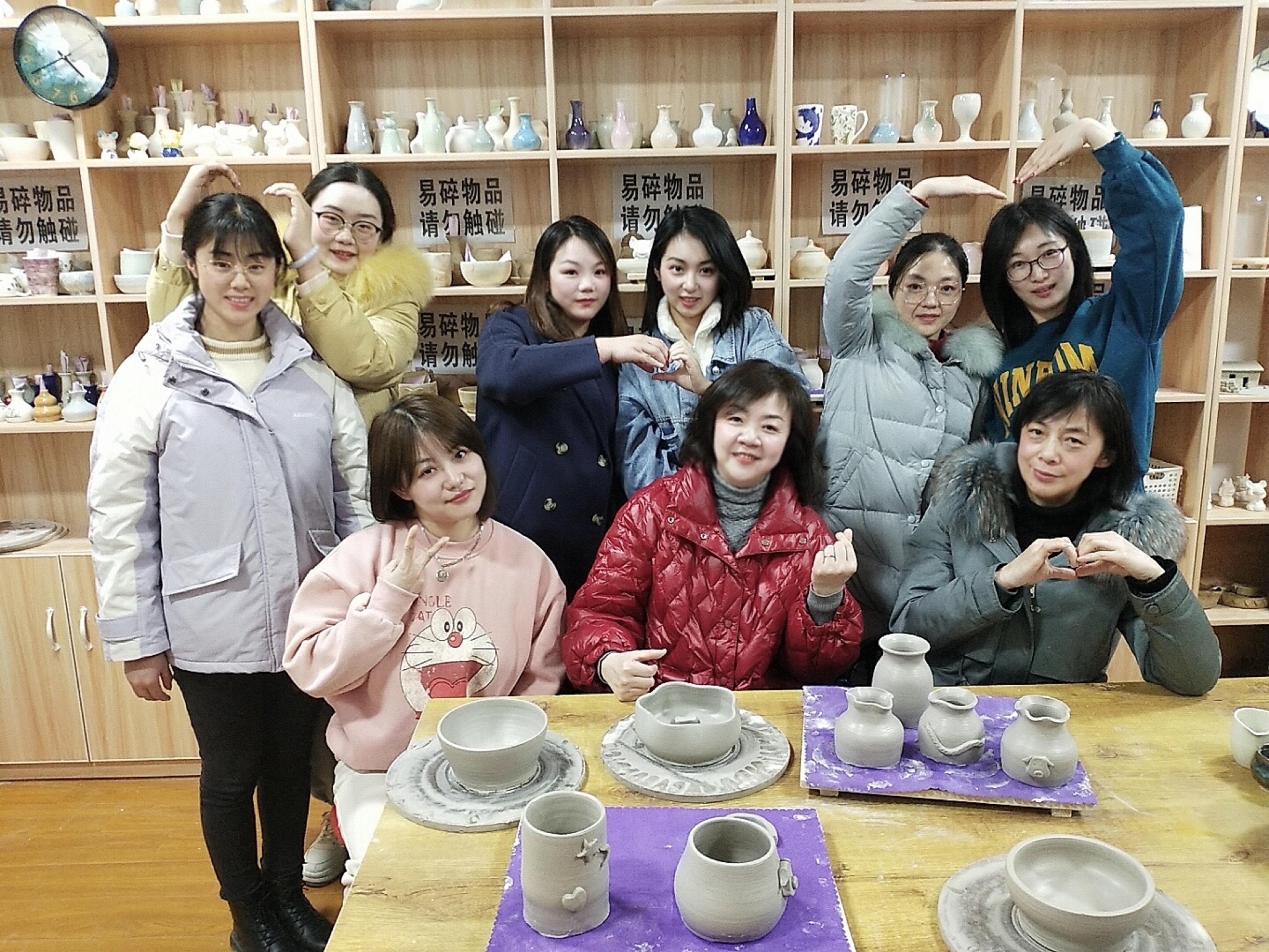 在拍攝創(chuàng)意照片活動中,女職工們身穿工作服,手拿慶祝節(jié)日圖片,展現(xiàn)女職工風(fēng)采。同時,以手臂為造型,共同組成心型圖案,寓意同心啟程“十四五”,為公司發(fā)展助力。在之后開展的手工陶藝活動中,女職工們在陶藝制作師的指導(dǎo)下,利用轉(zhuǎn)動的輪盤,動手將瓷土拉制成各種形狀的拉胚,并對陶藝進行塑型雕花,制作出一件件精美的陶藝作品。