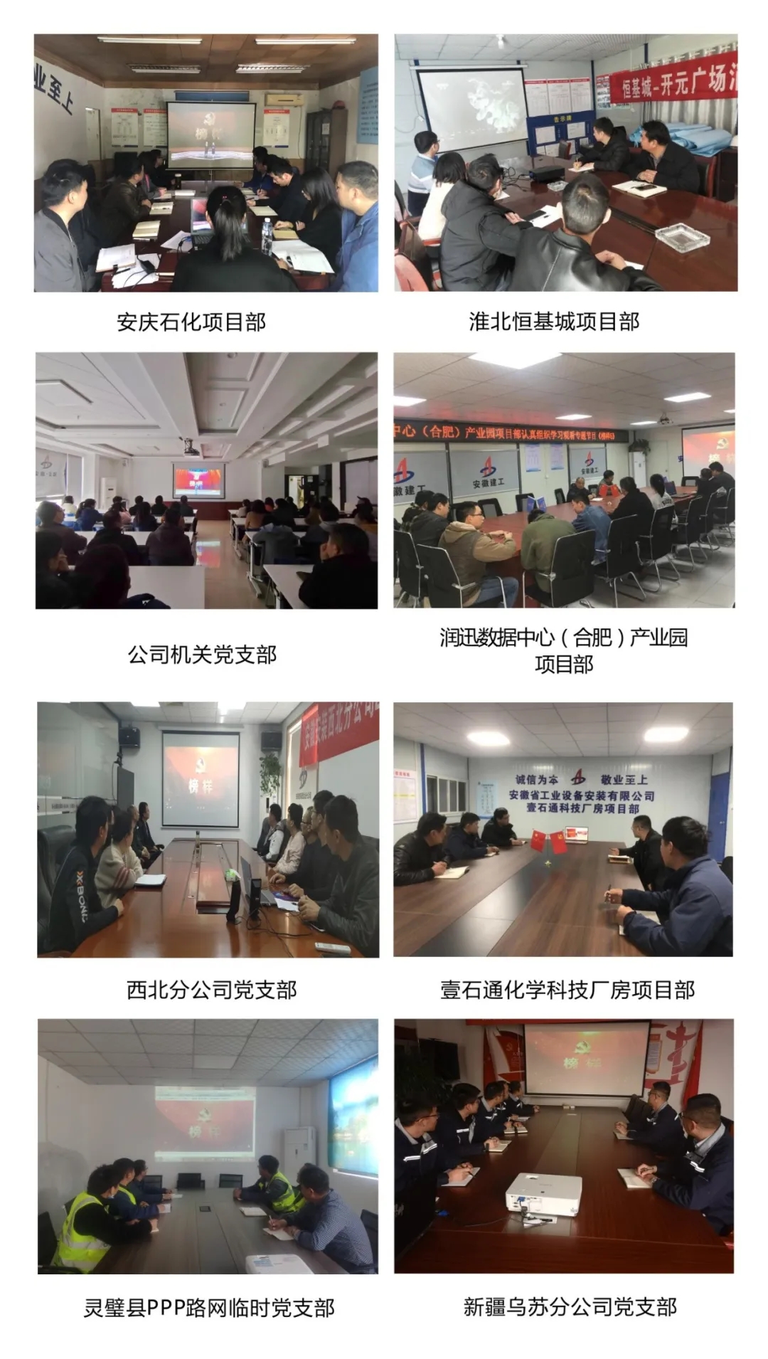 靈璧縣PPP路網(wǎng)臨時黨支部、壹石通化學(xué)科技廠房項目、潤迅數(shù)據(jù)中心(合肥)產(chǎn)業(yè)園項目、蚌埠康寧藥用玻璃管項目、安慶石化項目部于3月22日晚上立即組織共同觀看《榜樣5》,并視頻討論、召開會議等多種形式進(jìn)行學(xué)習(xí)交流。