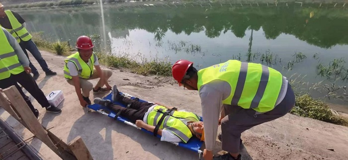 固鎮(zhèn)三八河景觀工程項(xiàng)目部根據(jù)本項(xiàng)目臨近水邊的作業(yè)特點(diǎn)開(kāi)展了防溺水應(yīng)急救援演練,模擬現(xiàn)場(chǎng)人員發(fā)生溺水,項(xiàng)目部立即組織人力搶救上岸。立即清除口、鼻中的污泥、雜草,保持呼吸道通暢。并進(jìn)行胸外按壓及人工呼吸,120救護(hù)車(chē)及時(shí)到場(chǎng)后送往醫(yī)院搶救,通過(guò)防溺水演練增強(qiáng)了項(xiàng)目部全體員工遇到緊急情況時(shí)的應(yīng)變能力和實(shí)際操作救援處置能力。