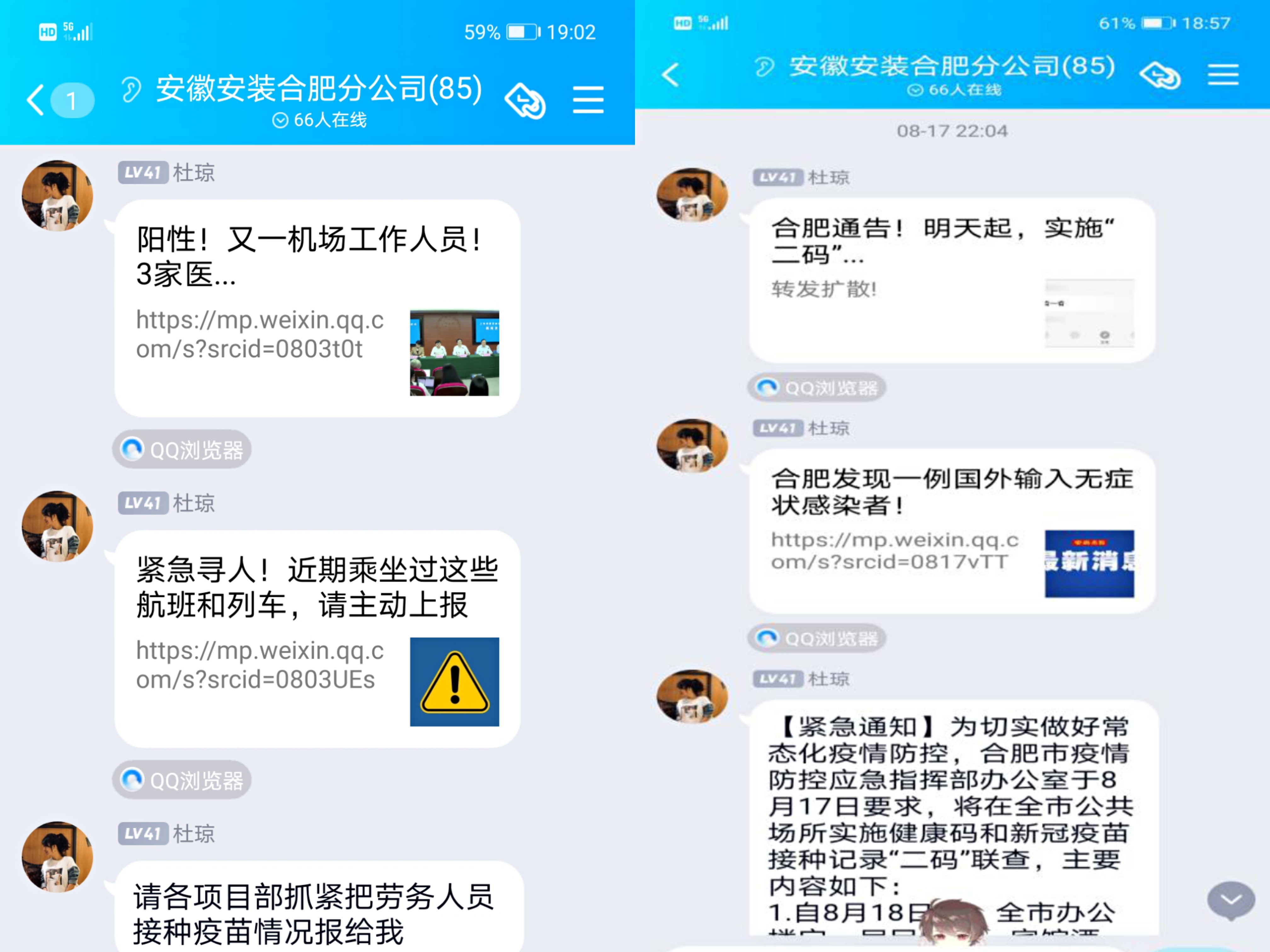 為落實“外防輸入,內(nèi)防反彈”工作要求,根據(jù)合肥市疫情防控應(yīng)急指揮部發(fā)布的通知以及集團、公司疫情防控有關(guān)工作要求,合肥分公司高度重視,采取多項措施,統(tǒng)籌抓好疫情防控各項工作。
