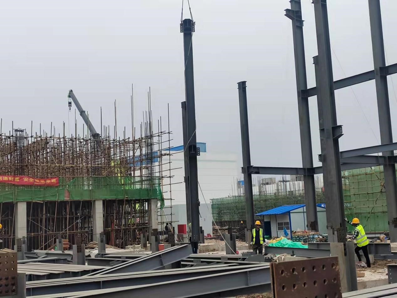 國慶期間,壹石通化學(xué)科技廠房項(xiàng)目現(xiàn)場施工任務(wù)緊,項(xiàng)目部全體人員放棄假期全力投身現(xiàn)場工作,嚴(yán)把現(xiàn)場質(zhì)量關(guān)、嚴(yán)管現(xiàn)場作業(yè)安全、嚴(yán)控現(xiàn)場施工進(jìn)度、嚴(yán)防疫情影響。在國慶期間初期水池與事故水池正在加緊施工,原料庫二基礎(chǔ)正在開挖,制水車間鋼結(jié)構(gòu)屋面正在安裝綜合車間屋面保護(hù)層正在澆筑。