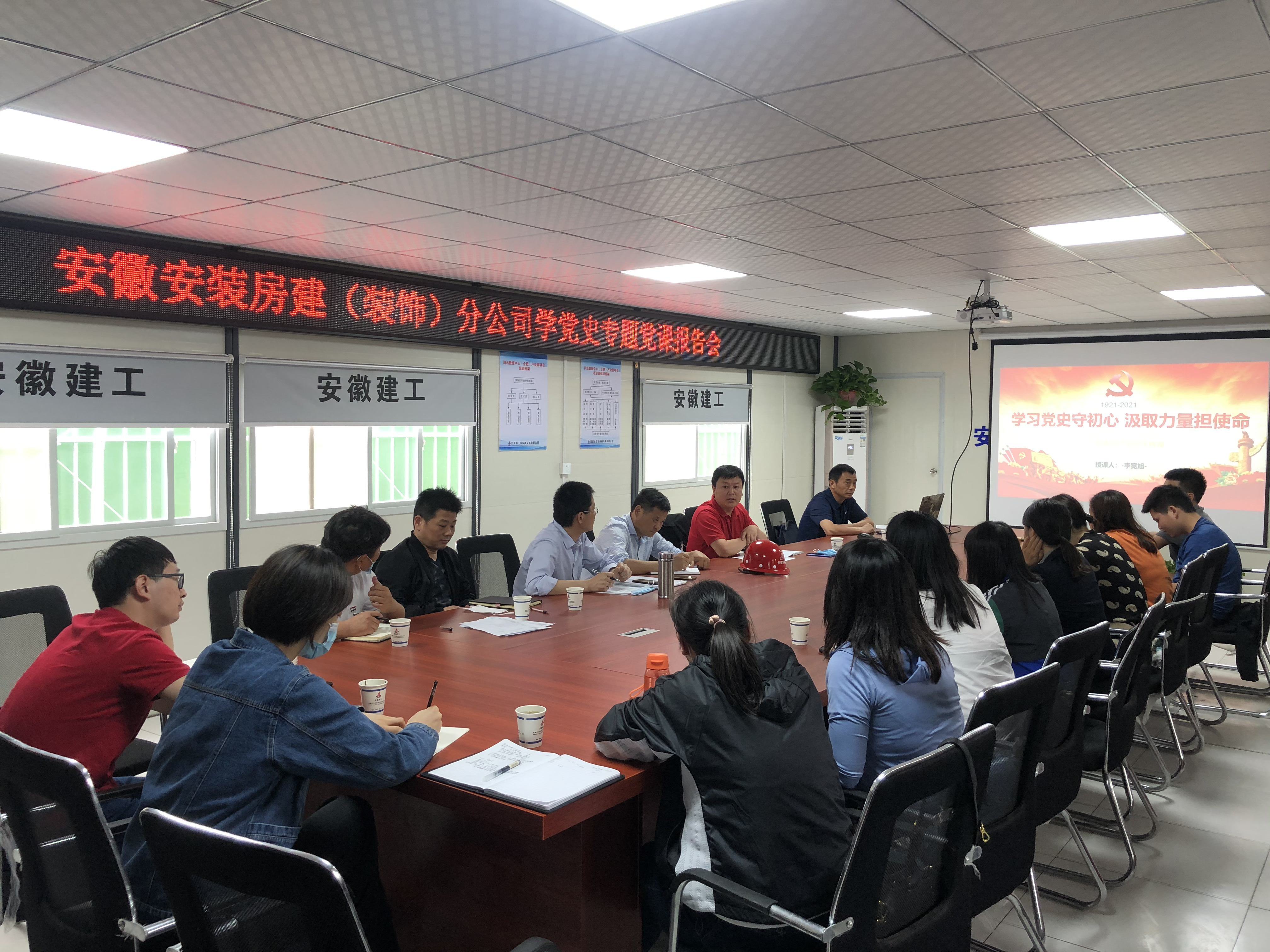 5月21日下午,根據(jù)公司黨委黨史學(xué)習(xí)教育計(jì)劃安排,公司紀(jì)委書記、工會(huì)主席李寬旭赴房建(裝飾)分公司潤迅數(shù)據(jù)中心(合肥)產(chǎn)業(yè)園項(xiàng)目作基層黨史學(xué)習(xí)教育專題黨課報(bào)告,房建(裝飾)分公司機(jī)關(guān)人員、項(xiàng)目一線職工、團(tuán)員青年等30余人參加了會(huì)議。