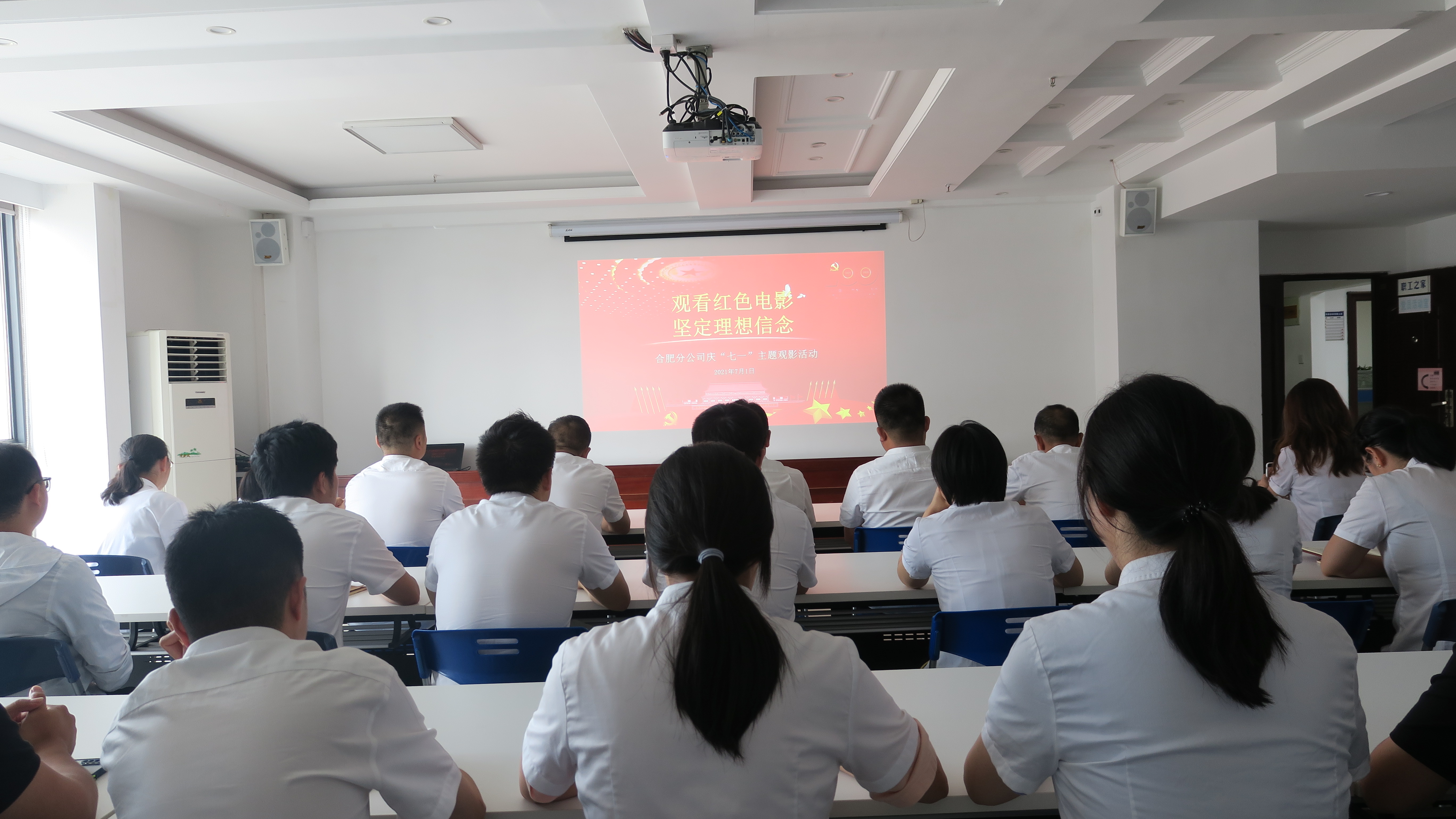 在慶祝中國共產(chǎn)黨成立100周年之際,為傳承紅色基因,激揚(yáng)新時代奮斗精神,進(jìn)一步激發(fā)廣大黨員干部職工的愛國愛黨熱情,把黨史學(xué)習(xí)教育引向深入,7月1日下午,合肥分公司黨支部組織在肥黨員、機(jī)關(guān)員工以及靈璧項(xiàng)目臨時黨支部聯(lián)合開展了“觀看紅色電影 堅(jiān)定理想信念”主題觀影活動,大家共同觀看了黨史教育片《建黨偉業(yè)》,重溫紅色經(jīng)典,牢記初心使命。