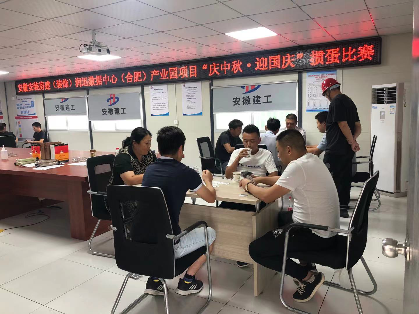 為豐富項目部員工的業(yè)余文化生活,營造員工健康快樂的良好工作氛圍,9月20日下午,房建(裝飾)分公司潤迅數(shù)據(jù)中心(合肥)產(chǎn)業(yè)園項目舉辦了“歡樂中秋·喜迎國慶””摜蛋”比賽。項目部全體成員及各分包隊計16名員工參加了本次比賽。