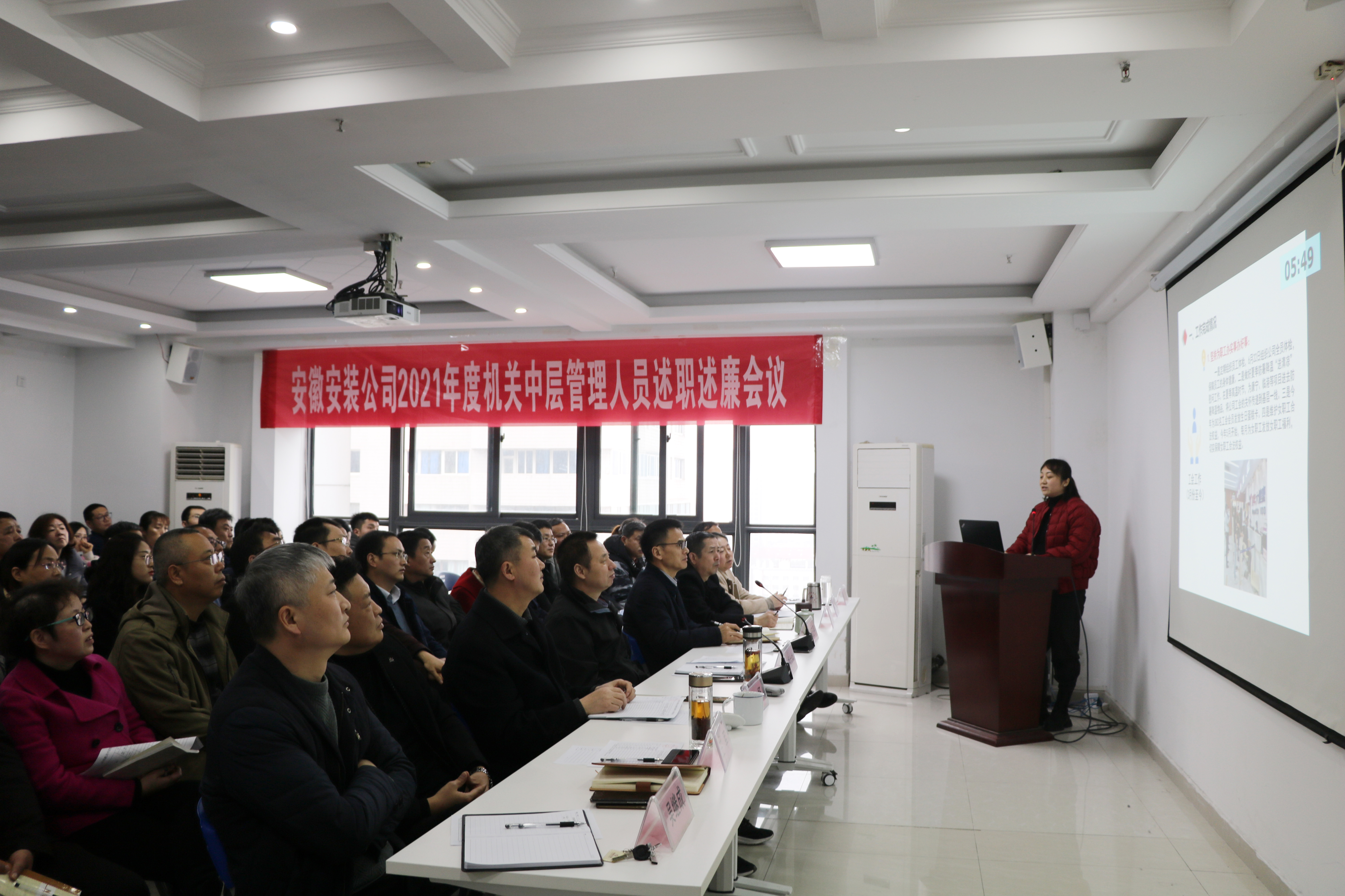 1月10日下午,安徽安裝公司召開(kāi)2021年度機(jī)關(guān)中層管理人員述職述廉會(huì)議。公司領(lǐng)導(dǎo)班子成員、機(jī)關(guān)中層管理人員、分公司黨政負(fù)責(zé)人、機(jī)關(guān)部門(mén)員工代表共70余人參加會(huì)議,公司黨委書(shū)記、董事長(zhǎng)胡六中主持會(huì)議。