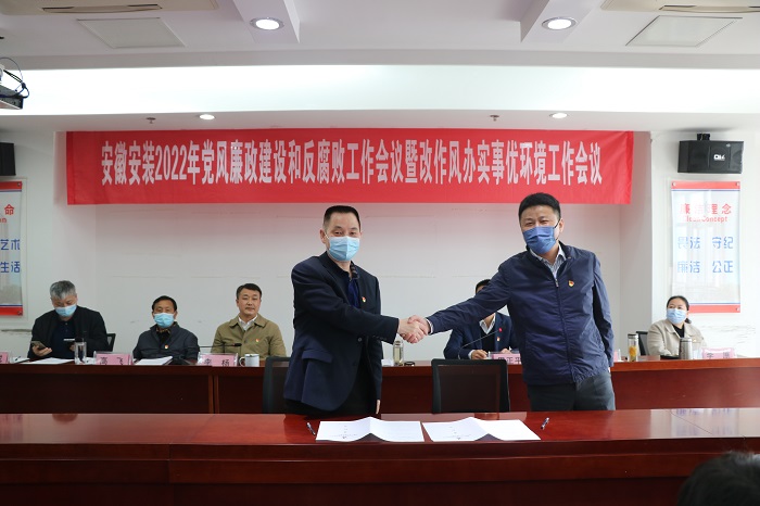 會(huì)上傳達(dá)學(xué)習(xí)了習(xí)近平總書記在十九屆中央紀(jì)委六次全會(huì)上的重要講話精神、省紀(jì)委十一屆二次全會(huì)精神、全省改進(jìn)工作作風(fēng)為民辦實(shí)事為企優(yōu)環(huán)境大會(huì)精神以及集團(tuán)黨風(fēng)廉政建設(shè)和反腐敗工作暨改作風(fēng)辦實(shí)事優(yōu)環(huán)境工作會(huì)議精神,宣讀了《安徽安裝公司改作風(fēng)、辦實(shí)事、優(yōu)環(huán)境工作實(shí)施意見》,公司黨委與所屬各黨支部簽訂了《黨風(fēng)廉政建設(shè)責(zé)任書》,公司中層管理人員簽訂了《廉潔自律承諾書》。會(huì)議以現(xiàn)場(chǎng)加視頻形式召開,公司機(jī)關(guān)各部門正副職、合肥地區(qū)分公司領(lǐng)導(dǎo)班子成員,外地分公司分別在主、分會(huì)場(chǎng)參加會(huì)議。