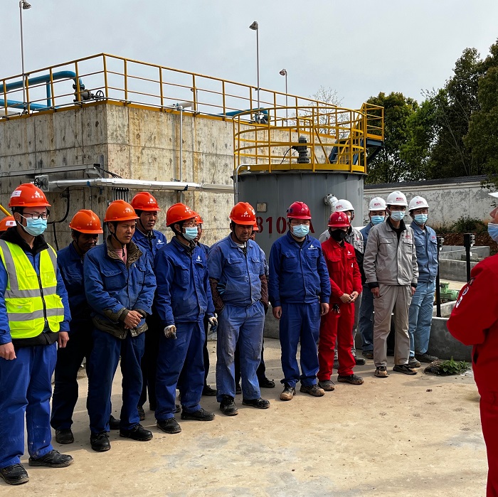 此次演練預(yù)設(shè)內(nèi)容為安慶石化廠區(qū)施工現(xiàn)場正在運行中的管道硫化氫泄漏,演練活動正式開始,巡檢人員發(fā)現(xiàn)情況后立即上報應(yīng)急小組總指揮,接到報告后,項目部立即啟動應(yīng)急預(yù)案,應(yīng)急小組成員緊急就位,警戒硫化氫泄漏區(qū)域,在現(xiàn)場設(shè)置疏散通道,在周邊路口設(shè)置警戒隔離,防止人員車輛靠近,指揮現(xiàn)場作業(yè)人員有序撤離,引導(dǎo)工人到指定集合點集合,人員到達(dá)集合點后清點人數(shù),并向應(yīng)急總指揮匯報人員撤離情況及身體狀況。演練結(jié)束后,分公司安全部負(fù)責(zé)人肖健組織所有參加演練人員進(jìn)行總結(jié)。