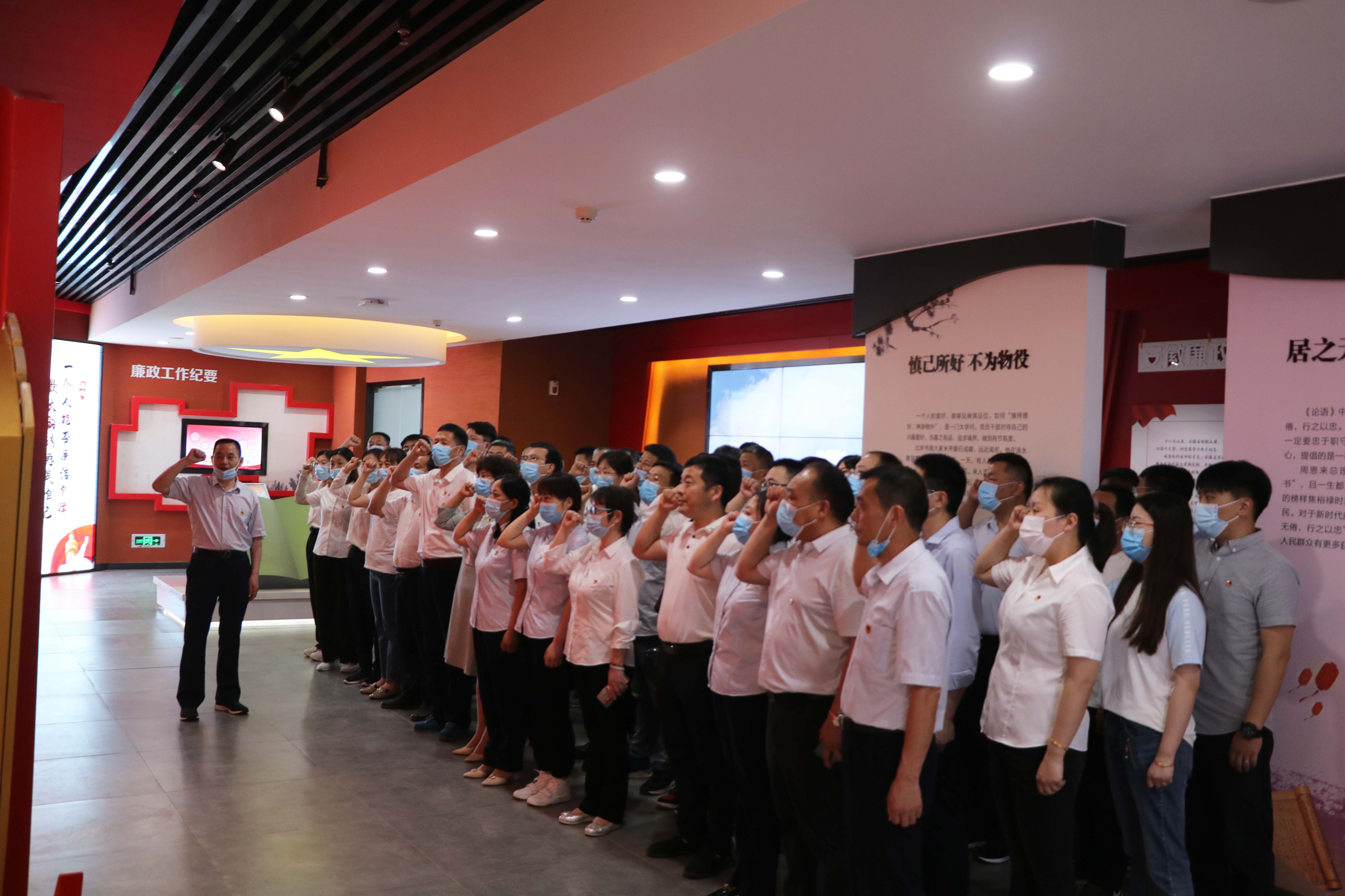瑤海區(qū)人民法院廉政文化館共兩層,內(nèi)容分為“廉政文化館”“法治文化教育館”和“院史陳列館”三個(gè)篇章,綜合運(yùn)用展板、實(shí)物、雕塑、場(chǎng)景、聲光電等多種形式,將歷史與現(xiàn)實(shí)緊密結(jié)合,多角度、大縱深地闡釋廉潔文化這一主題。在一樓警示教育報(bào)告廳里,在講解員的解說(shuō)下,大家依次參觀了鑒史問(wèn)廉、廉政故事、貪腐之害、時(shí)光隧道、廉潔豐碑、廉政成果、廉政文章、廉政寄語(yǔ)八大板塊,參觀過(guò)程中大家仔細(xì)聆聽,細(xì)細(xì)研讀,通過(guò)展廳內(nèi)文字、實(shí)物、整合的典型圖文資料、影音影像等,深入學(xué)習(xí)了廉政文化、中國(guó)共產(chǎn)黨反腐倡廉歷史、安徽省反腐倡廉實(shí)踐等內(nèi)容,大家在視覺(jué)、聽覺(jué)上接受了一堂全面生動(dòng)的反腐倡廉警示教育課?;顒?dòng)期間,公司黨委書記、董事長(zhǎng)胡六中帶領(lǐng)在場(chǎng)全體黨員集體重溫入黨誓詞。