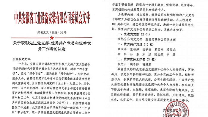 今年以來,趙永峰同志以黨史學(xué)習(xí)教育和慶祝中國共產(chǎn)黨成立100周年為契機,以集團黨建“領(lǐng)航計劃”為抓手,創(chuàng)新型開展支部黨建工作,多措并舉,勠力同心,真抓實干,積極探索項目黨建工作新載體、新途徑,以深入開展創(chuàng)先爭優(yōu)“黨員示范崗”等主題實踐活動為載體,以“我為群眾辦實事”實踐活動帶領(lǐng)支部班子成員創(chuàng)造性地開展一系列黨建工作,用實際行動踐行初心使命,用真抓實干檢驗黨史學(xué)習(xí)教育成效。積極發(fā)揮了“一名黨員就是一面旗幟,一個支部就是一座堡壘”的重要作用。他所在合肥分公司被建工集團授予“先進集體”光榮稱號,合肥分公司黨支部被安徽省工業(yè)設(shè)備安裝有限公司黨委評為“先進黨支部”。趙永峰同志榮獲安徽建工集團“勞動模范”等多項榮譽稱號。