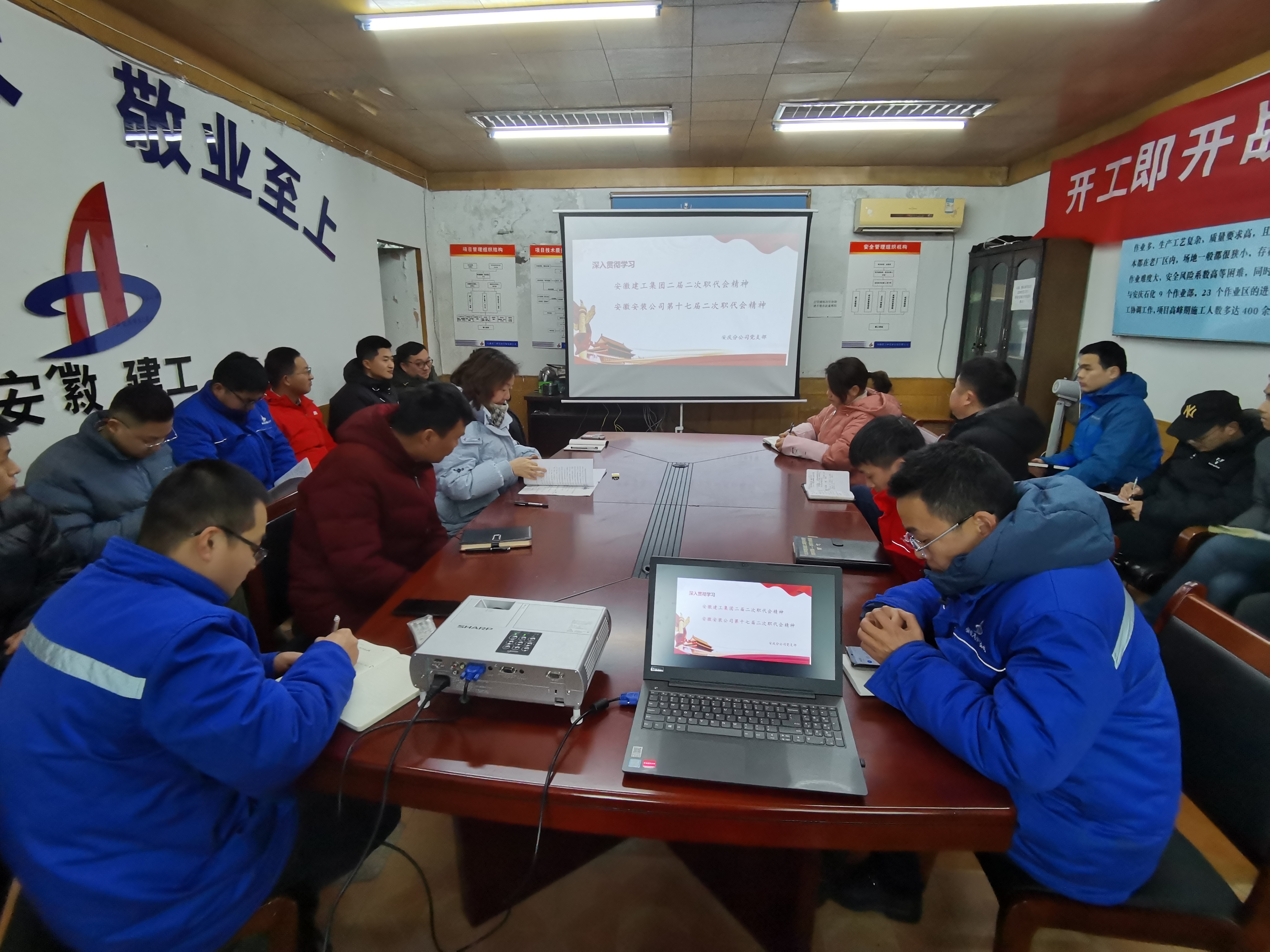 集團公司、公司兩級職代會相繼召開之后,2月9日,安慶分公司結合實際,迅速在分公司機關和項目部分別組織召開了專題學習會,積極開展學習宣貫兩級職代會精神。會議由分公司黨支部書記劉紅艷主持。