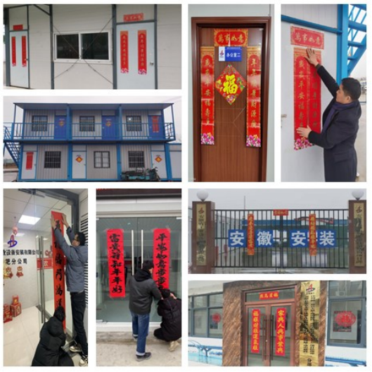 金牛送舊千家樂,玉虎迎新萬戶歡,春節(jié)將至,為豐富職工文化生活,營造歡樂、祥和、平安、喜慶、和諧的節(jié)日氣氛,合肥分公司工會提前準(zhǔn)備了喜慶的新年裝飾、對聯(lián)、窗花等節(jié)慶用品,組織團(tuán)員青年、機(jī)關(guān)員工將辦公室裝扮一新,并將濃濃年味帶到了各個(gè)項(xiàng)目部現(xiàn)場。