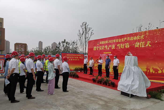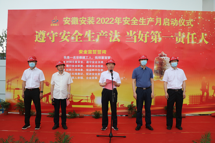 在全國第21個“安全生產月”活動到來之際,5月30日上午,安徽安裝公司2022年“安全生產月”啟動儀式在年配套1000萬臺新能源汽車及年產2億臺制冷空調壓縮機關鍵性能件制造基地項目舉行。公司黨委書記、董事長胡六中,紀委書記、工會主席李楊,副總經(jīng)理趙伯平,總工程師吳繼成及機關各部門、各分公司代表參加了本次活動。