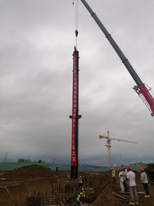 2022年7月26日上午8:18分,在項目建設(shè)單位、監(jiān)理單位、總包單位等領(lǐng)導(dǎo)的共同見證下,安徽建工交通智造基地項目鋼結(jié)構(gòu)工程迎來了隆重的鋼結(jié)構(gòu)首吊儀式。只見首根長約21.2米、重約11.6噸的鋼柱緩緩升起、穩(wěn)穩(wěn)落地,精準定位在安裝位置上,這標志著該項目正式進入鋼結(jié)構(gòu)主體安裝階段。