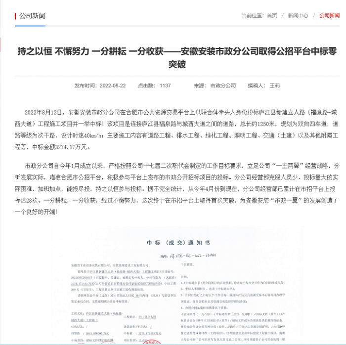 公司網(wǎng)站上刊登的中標(biāo)宣傳報道