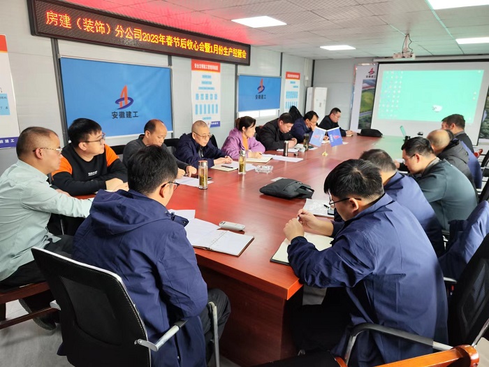 一年春作首,萬事行為先。1月31日,房建(裝飾)分公司在阜南污水處理廠項(xiàng)目部召開1月份生產(chǎn)經(jīng)營會暨春節(jié)后“收心會”,分公司全體員工參會。