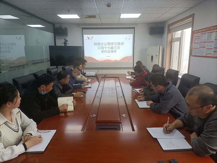 為深入學(xué)習(xí)公司十七屆三次職代會精神,全面貫徹落實會議部署要求。2月7日,陜西分公司組織召開專題學(xué)習(xí)會,會議由分公司經(jīng)理、黨支部書記張寶深主持,分公司機關(guān)全體員工參會。