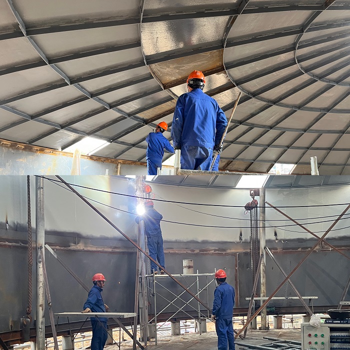 目前該項目ABR生化池主體結(jié)構(gòu)4米層池壁澆筑、池內(nèi)-1~0.6米層空心磚砌筑澆筑混凝土施工完成;調(diào)節(jié)罐安裝到第五帶板,電氣接地預(yù)埋施工完成;高密度沉淀池基礎(chǔ)筏板澆筑、污泥脫水框架基礎(chǔ)承臺混凝土澆筑完成,已順利完成總工程量的40%,實現(xiàn)了項目生產(chǎn)首季“開門紅”。