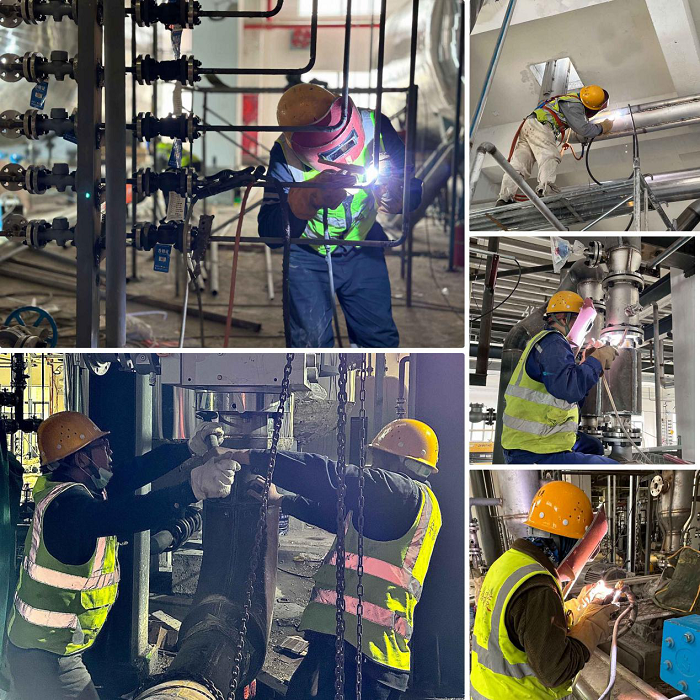 面對(duì)建設(shè)單位準(zhǔn)備在5月下旬進(jìn)行試生產(chǎn)的目標(biāo)任務(wù),車間內(nèi)新增管線是否能夠按時(shí)完成就成為確保試生產(chǎn)順利進(jìn)行的最大難題。為此,項(xiàng)目部精心組織、加強(qiáng)協(xié)調(diào),認(rèn)真部署,通過多次召開碰頭會(huì)最終達(dá)成最優(yōu)施工進(jìn)度方案,做到明確每日進(jìn)度內(nèi)容,合理安排施工人員,積極做好施工現(xiàn)場(chǎng)各項(xiàng)安全防護(hù)工作,在保證原有工程量的基礎(chǔ)上,對(duì)新增管線進(jìn)行科學(xué)分解,新增突擊作業(yè)隊(duì),采用“5+2”“白加黑”,多個(gè)小組多工作面同時(shí)施工的方法,開足馬力快速推進(jìn),從而大大提高了施工速度,提升了工作效率。