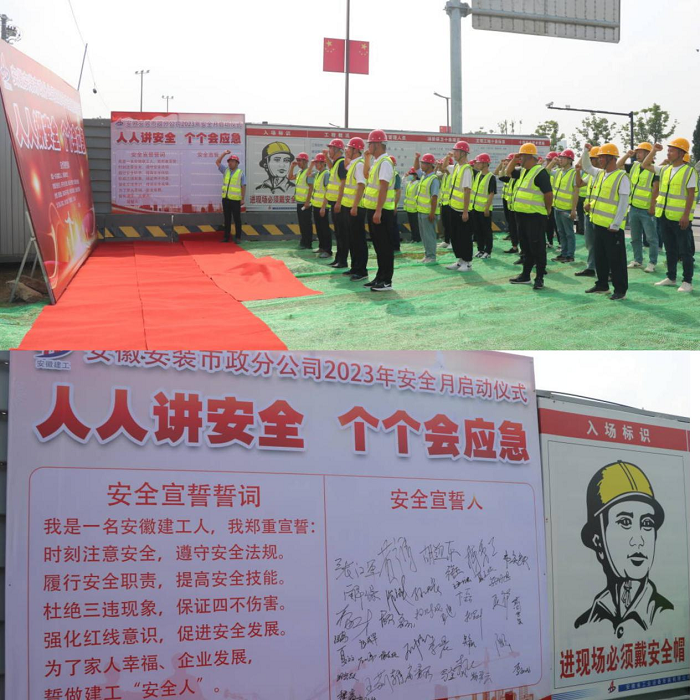 為弘揚安全發(fā)展理念,提高全員應(yīng)急防患能力,6月1日上午,市政分公司2023年“安全生產(chǎn)月”活動啟動儀式在吳山神道改造及周邊綠化提升項目部舉行。分公司領(lǐng)導(dǎo)班子及全體員工參加本次活動,公司安全管理部副經(jīng)理蔣秀正應(yīng)邀參加。